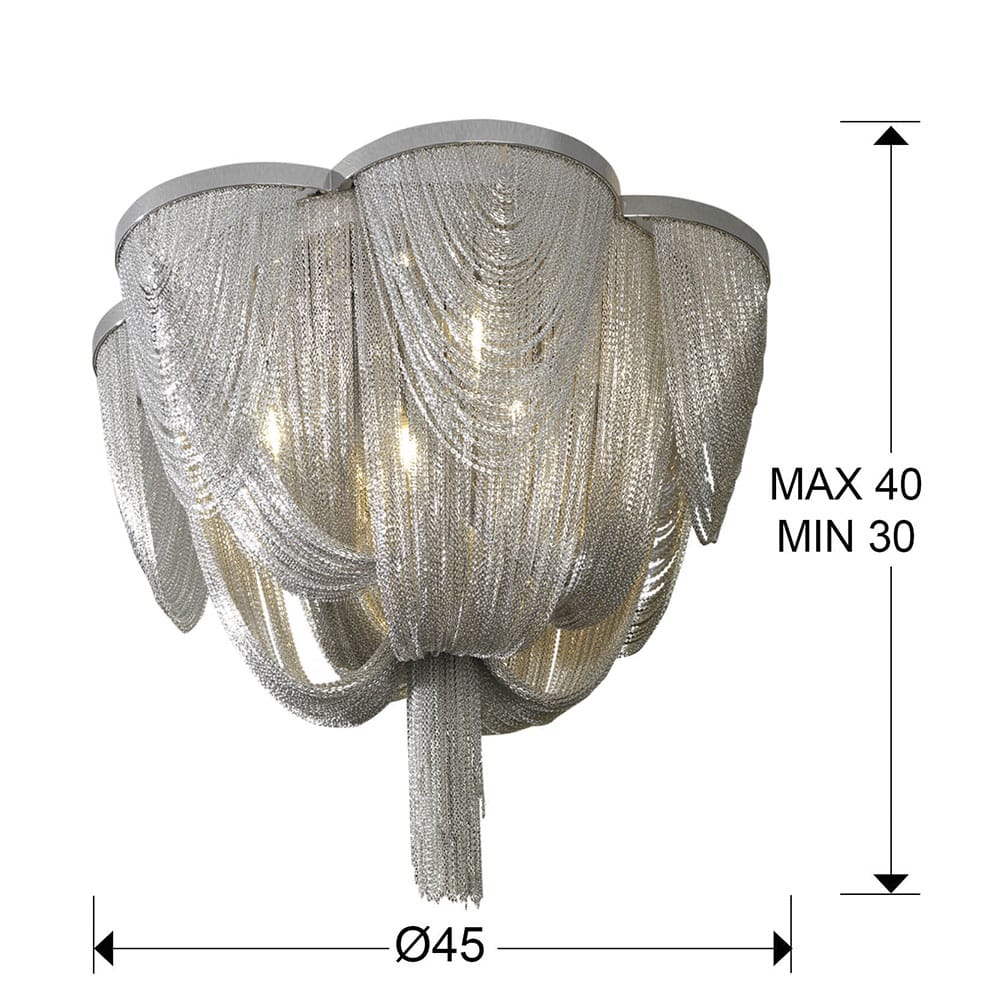 This stunning lamp features six lights elegantly arranged within a nickel-finished body crafted from fine metal chains.