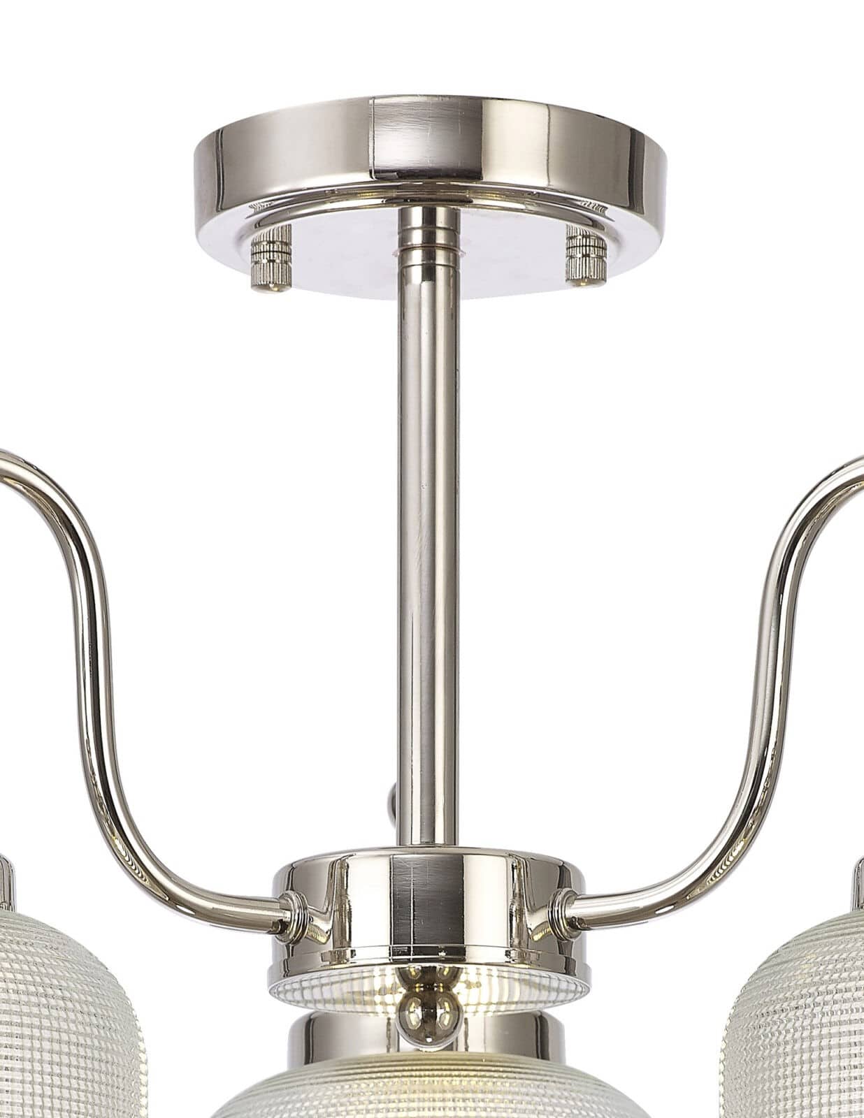 Abigail Semi Flush / Pendant, 3 Light E27, Polished Nickel / Prismatic Glass