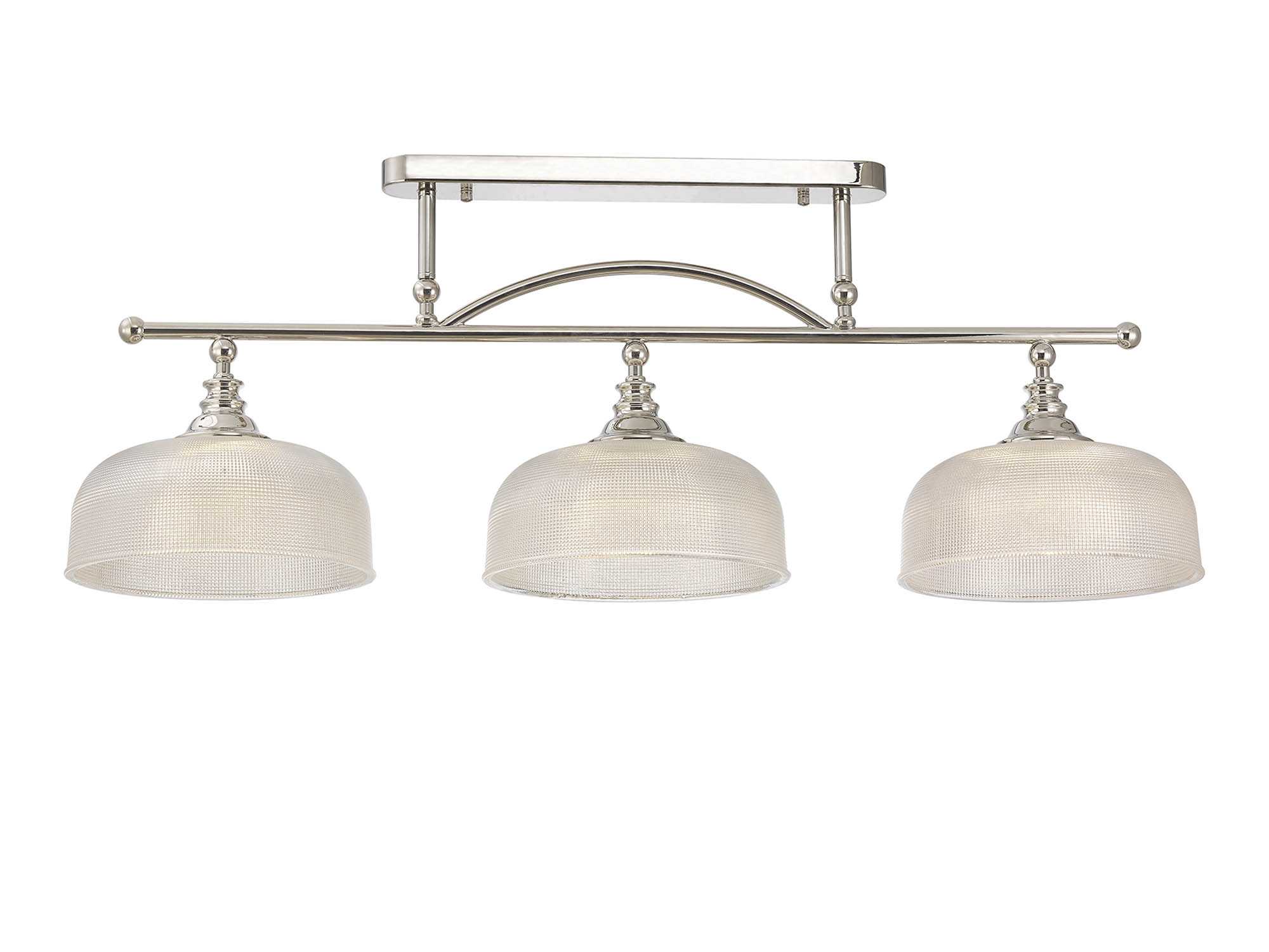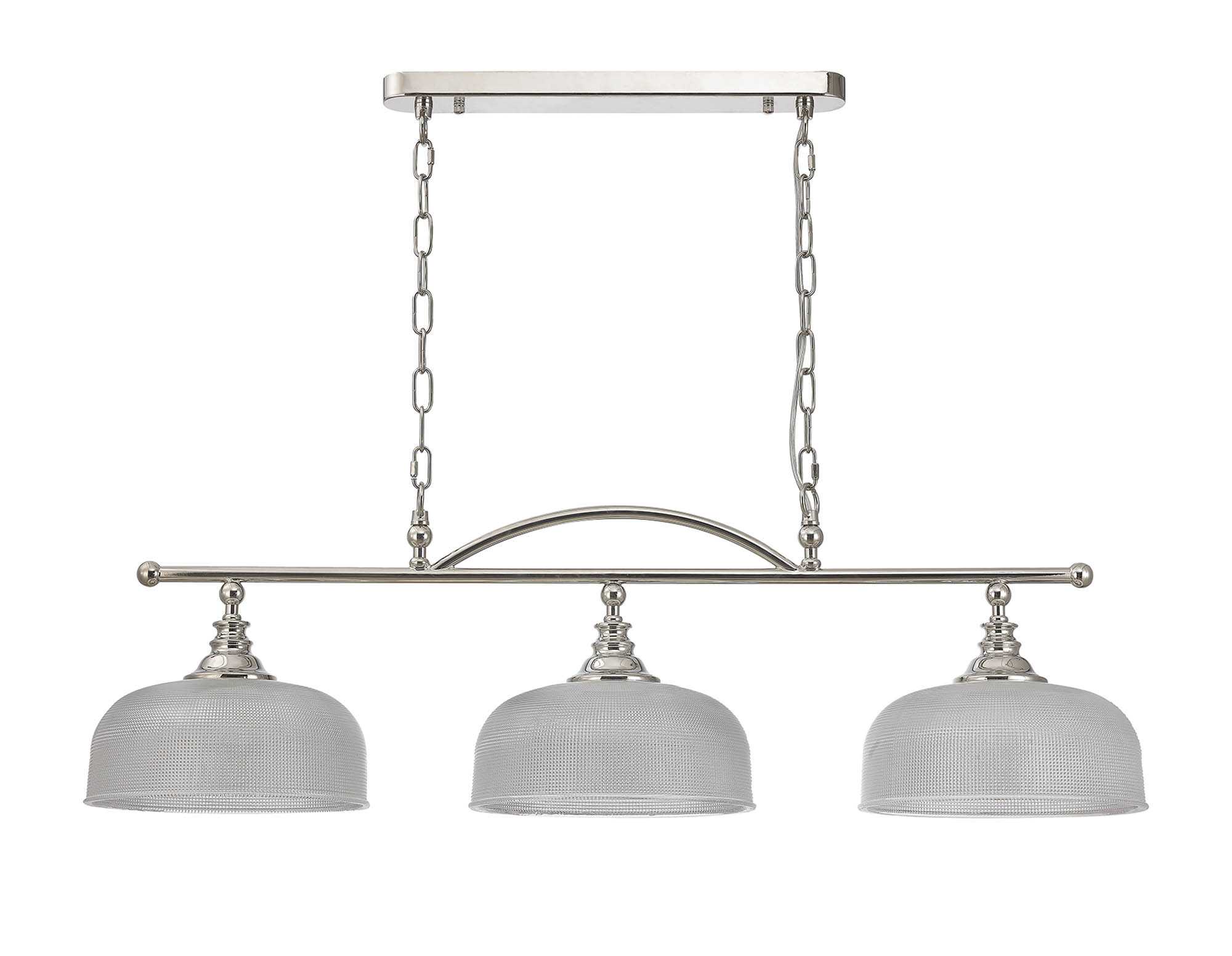 Abigail Semi Flush / Pendant Bar, 3 Light Adjustable E27, Polished Nickel / Prismatic Glass