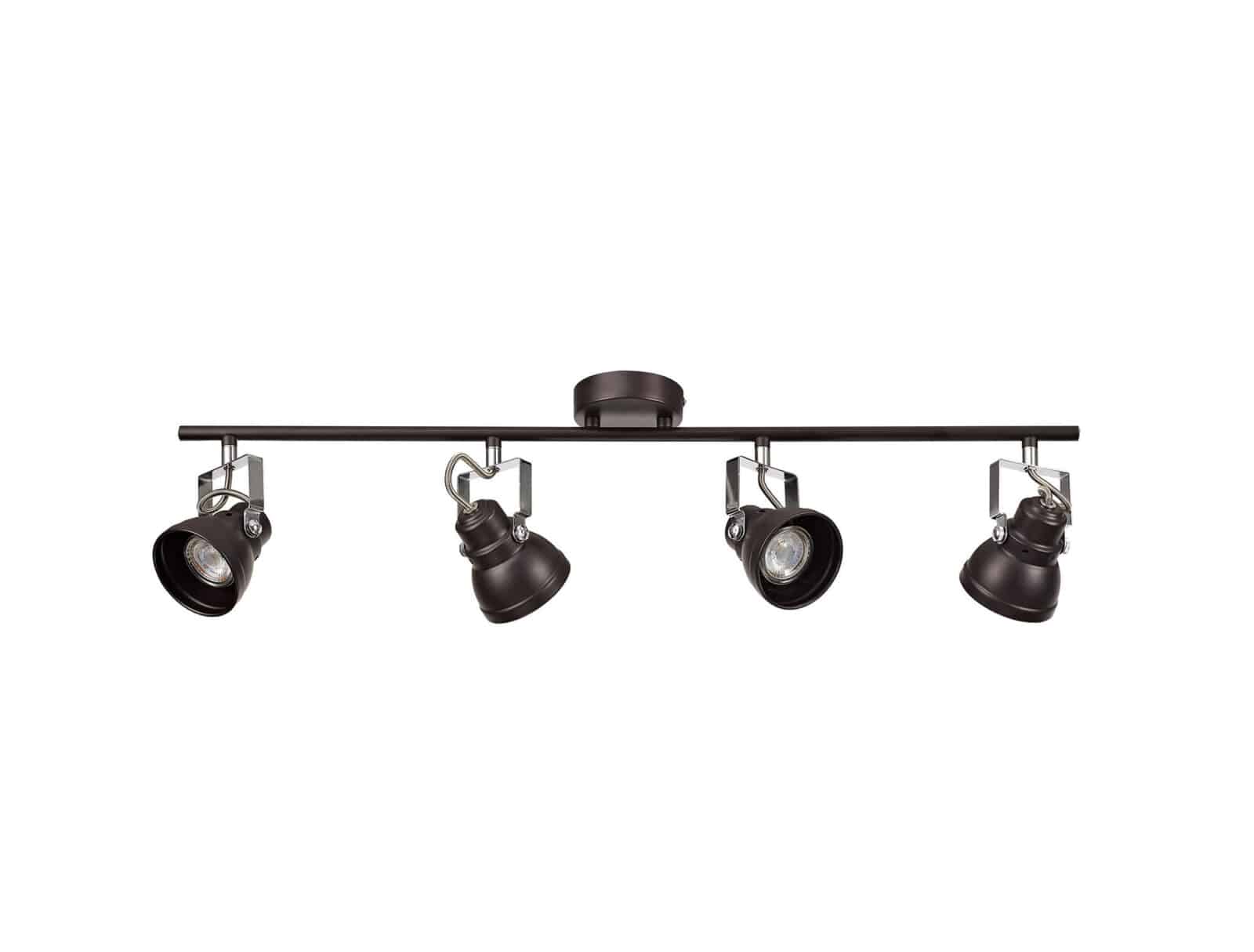 Alberto Adjustable Bar Spotlight, 4 x GU10 (Max 10W LED), Oiled Bronze/Polished Chrome