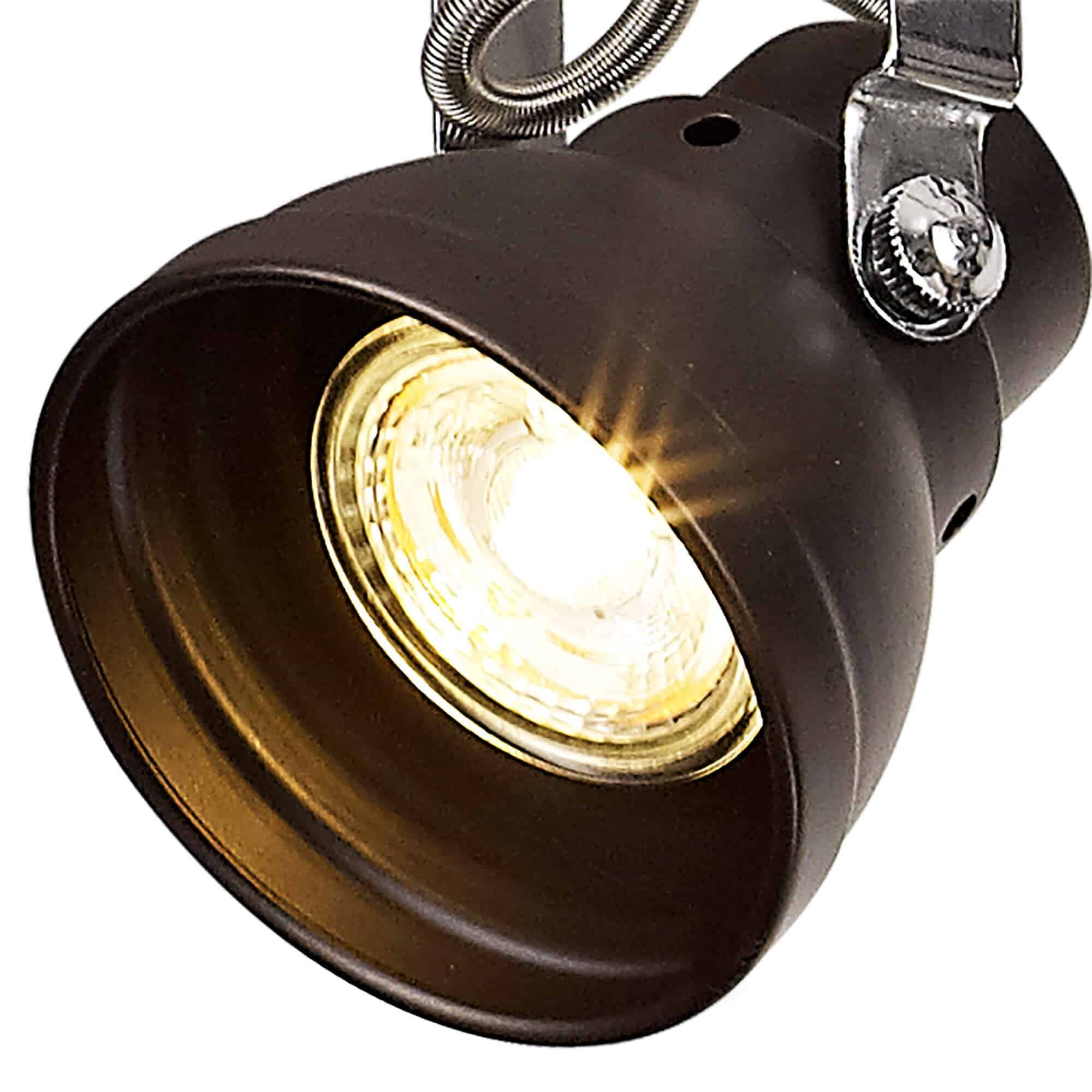 Alberto is a collection of LED only GU10 spotlights that are designed in the image of classic stage lighting with the metal spotlights shaped like lampshades with an adjustable directionality. This depiction will boost the character of a room, building upon the theme or as a stand-alone attraction. The 3 light round fitting, 4 light bar and 1 light are all available in either a matt grey and chrome or oiled bronze with chrome colour finish.