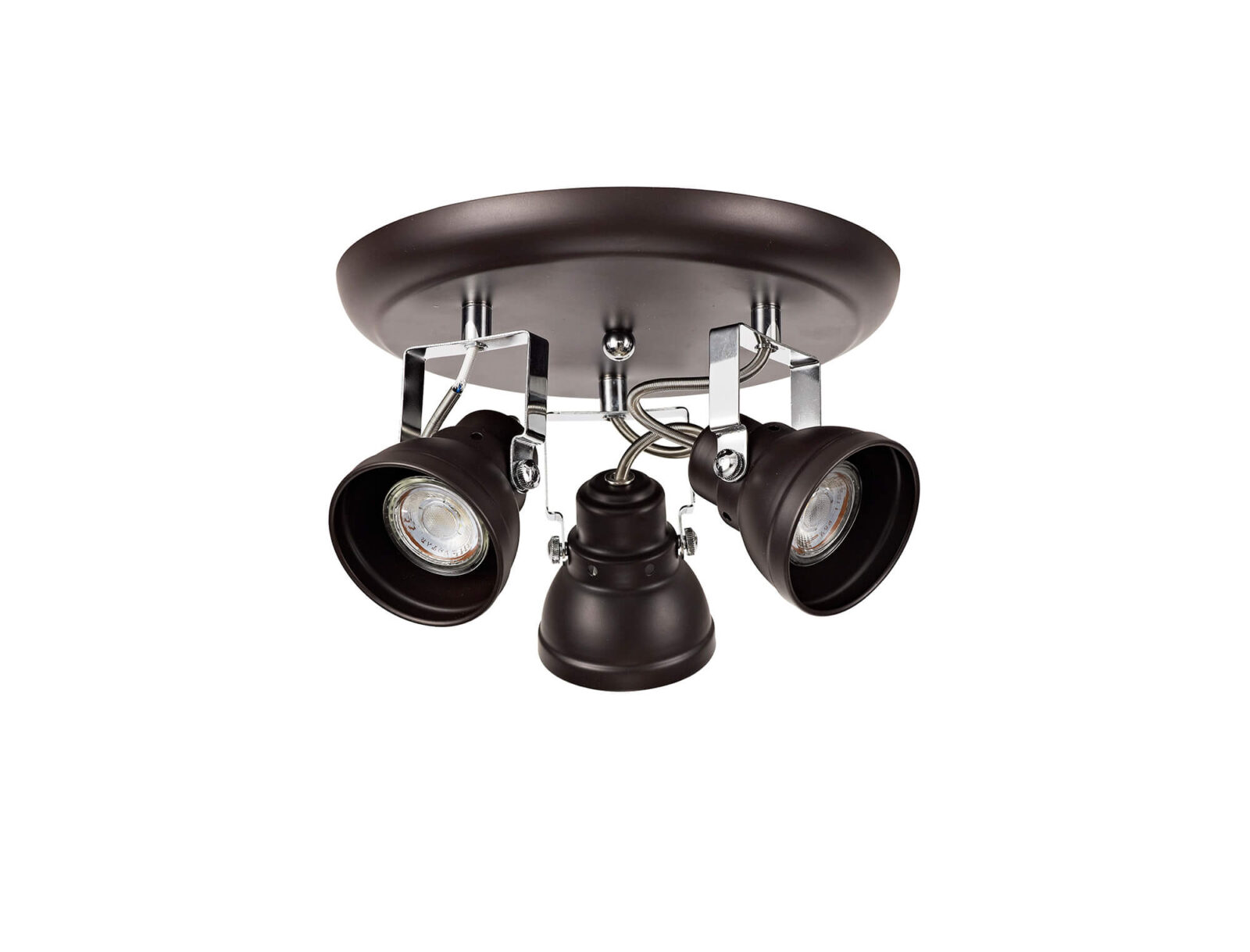 Alberto Adjustable Round Spotlight, 3 x GU10 (Max 10W LED), Oiled Bronze/Polished Chrome