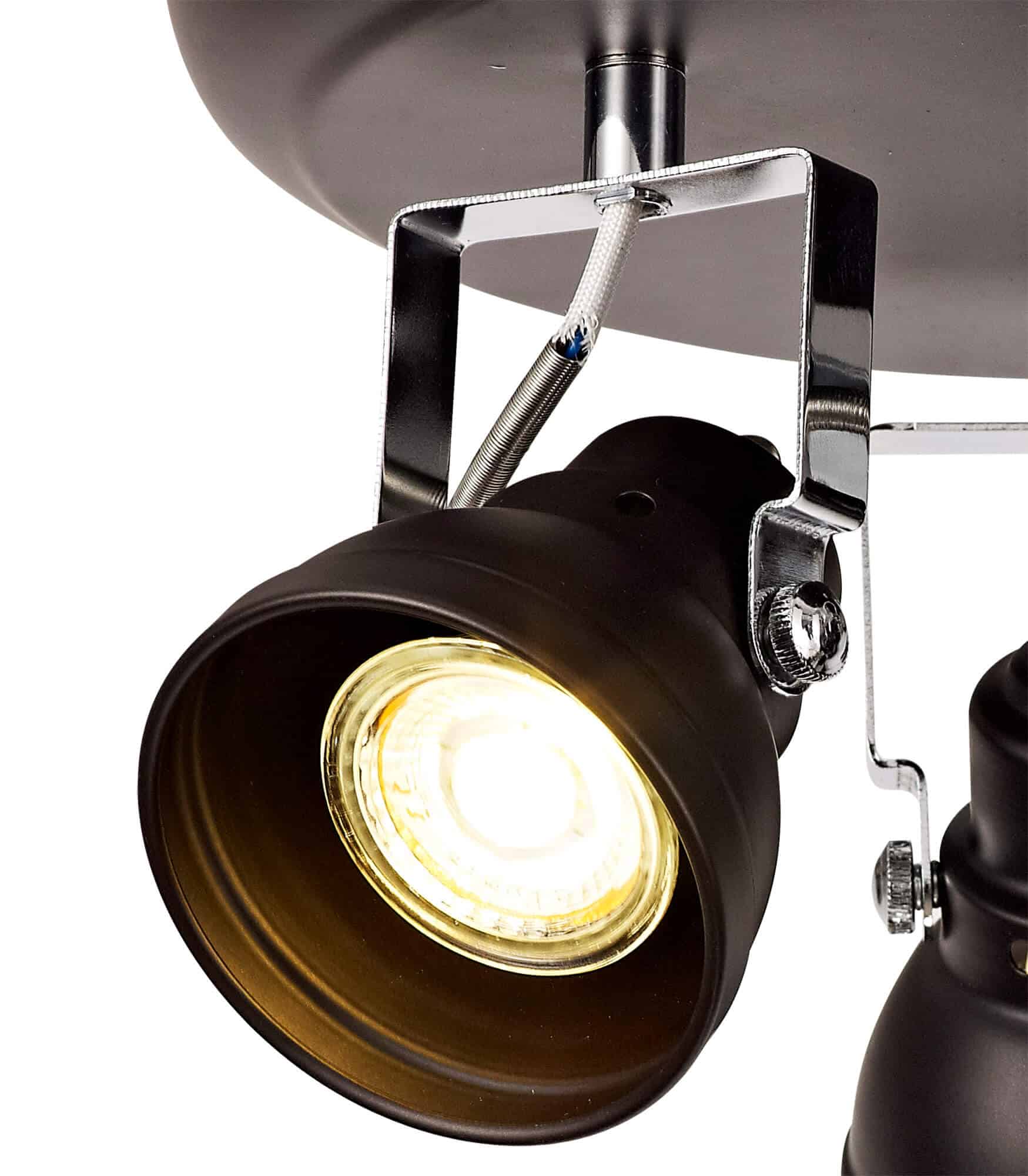 Alberto is a collection of LED only GU10 spotlights that are designed in the image of classic stage lighting with the metal spotlights shaped like lampshades with an adjustable directionality. This depiction will boost the character of a room, building upon the theme or as a stand-alone attraction. The 3 light round fitting, 4 light bar and 1 light are all available in either a matt grey and chrome or oiled bronze with chrome colour finish.