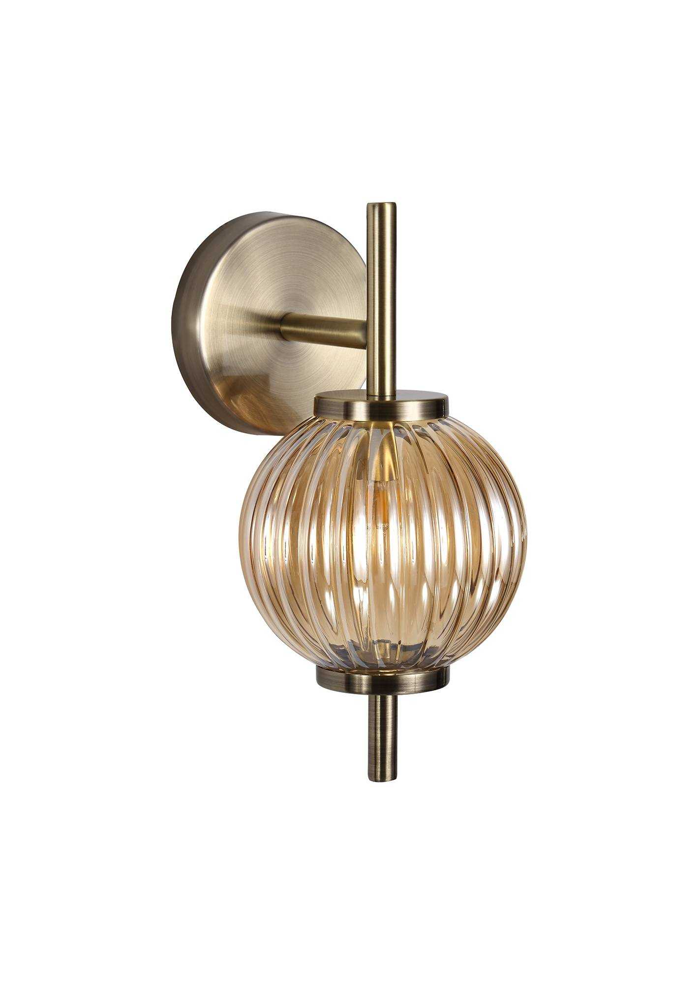 Archi Wall Lamp, 1 x G9, Antique Brass/Amber Glass