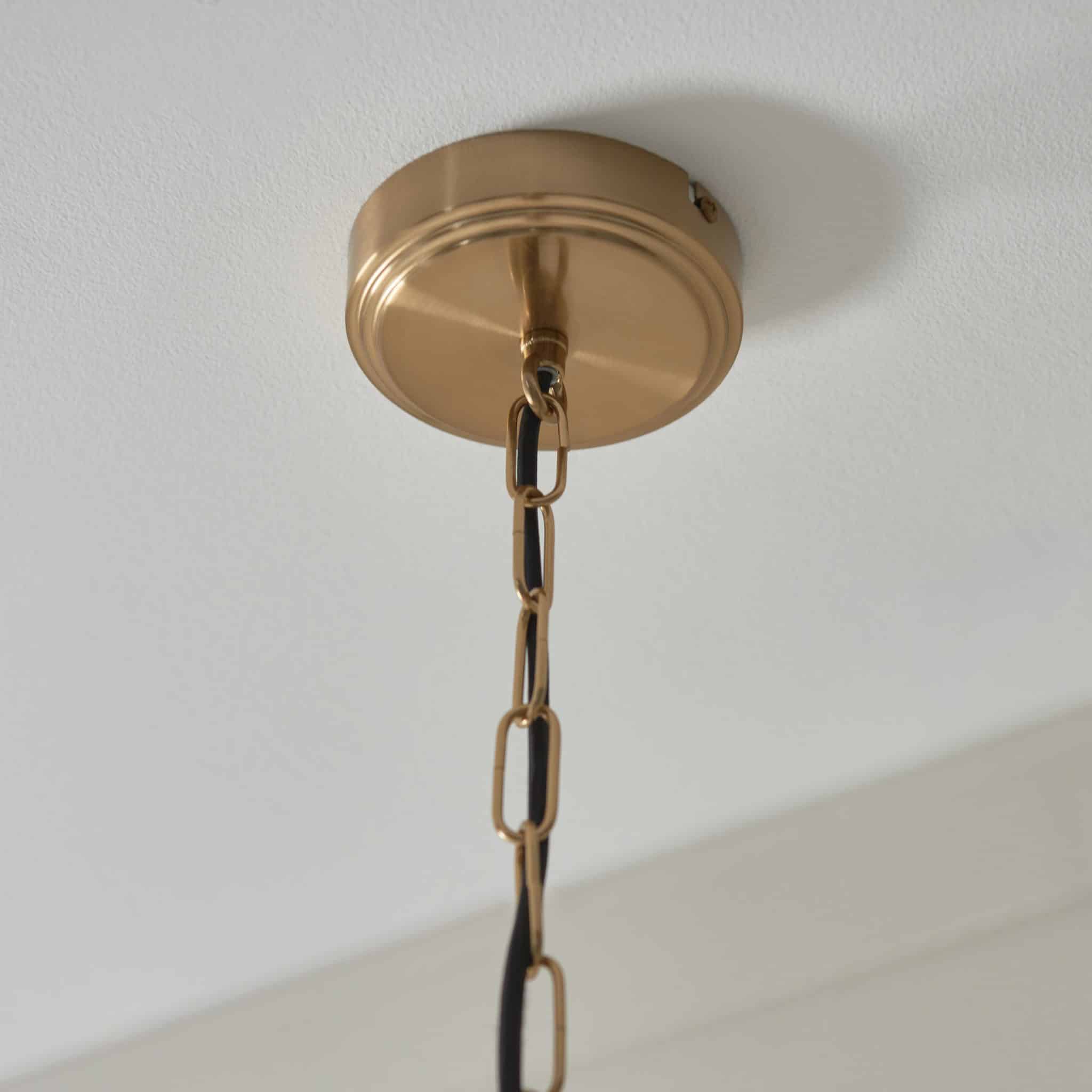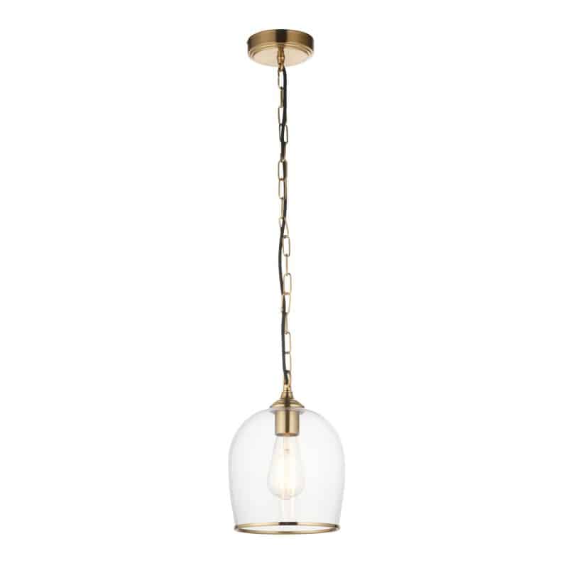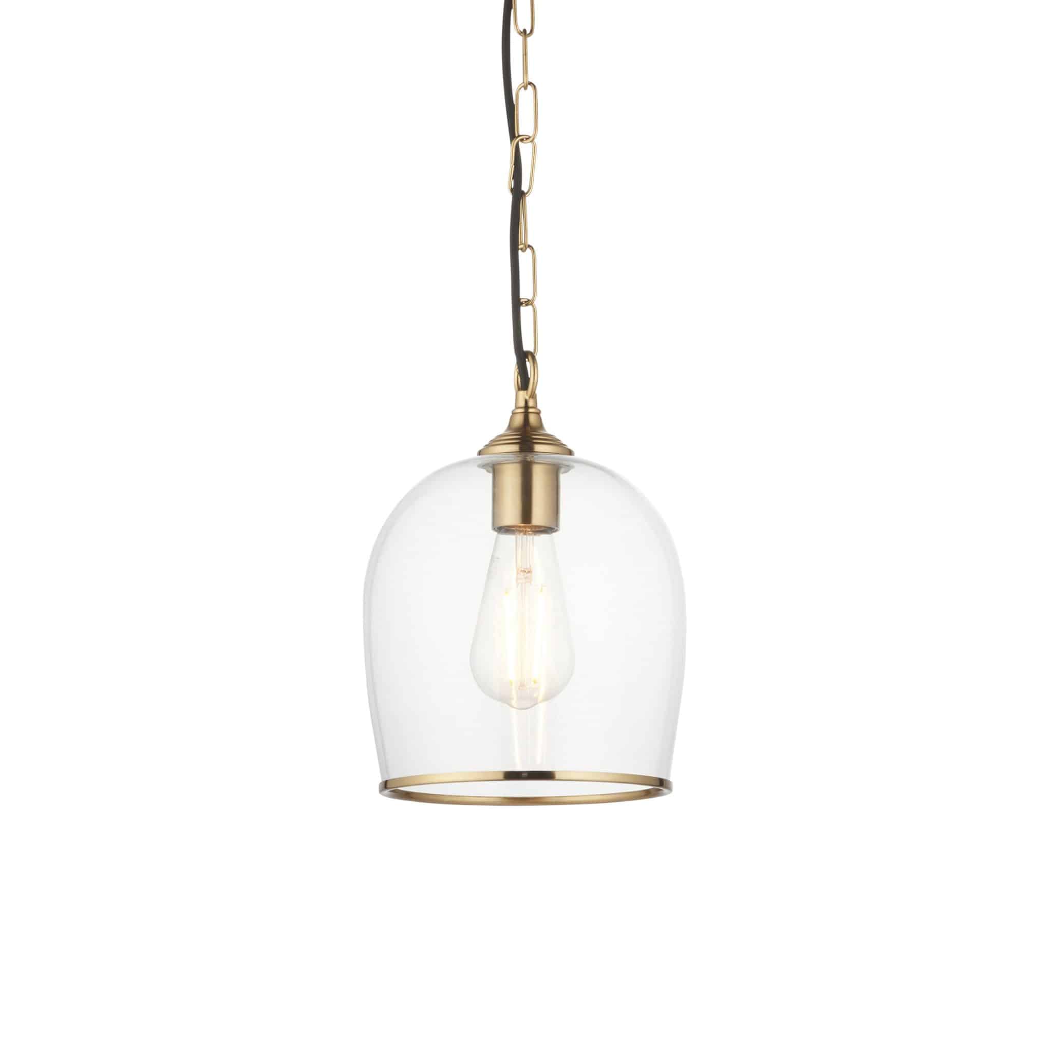 Refined and versatile, the Ashcroft pendant light in a warm brass finish, features a clear glass dome accented by a classic metal edge.  Additionally, the pendant is suspended from a height-adjustable chain and black braided flex for a vintage-inspired touch. The exposed bulb design adds charm and ambient warmth, making it ideal for kitchens, dining areas, or hallway settings. Style the Ashcroft pendant solo or in multiples for a striking statement with timeless appeal.