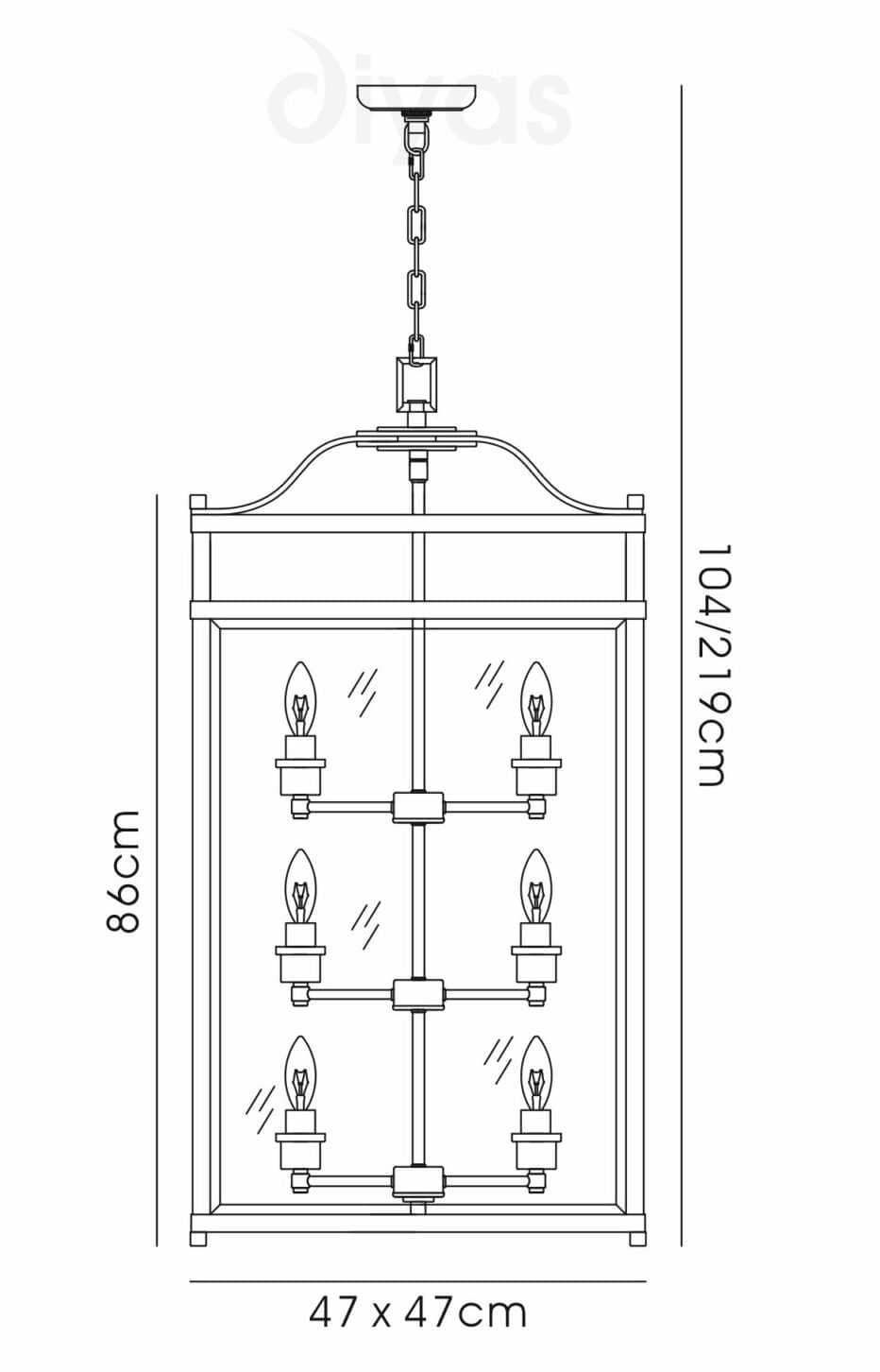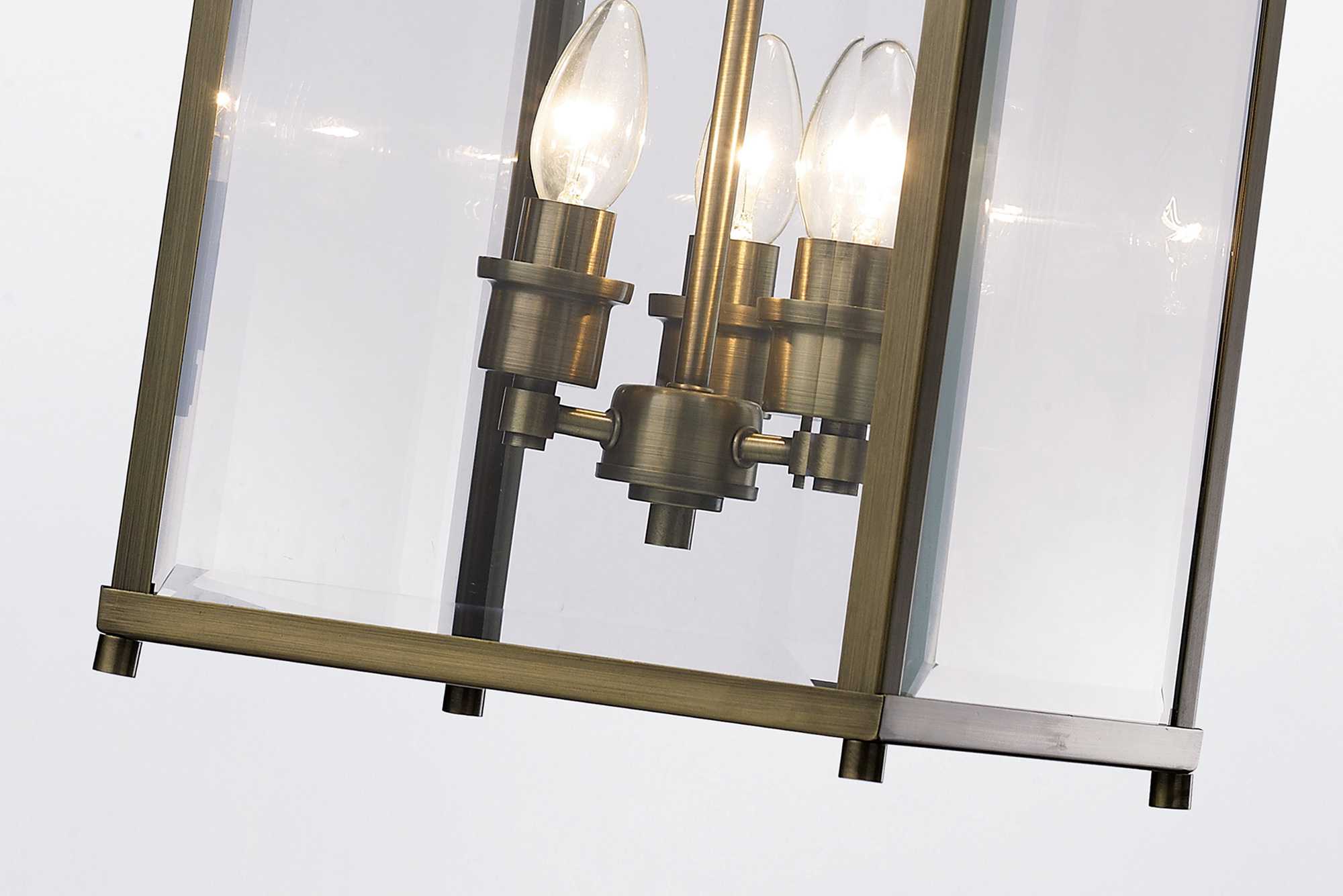 The Aston Square Lantern Twelve light Pendant in Antique Brass.