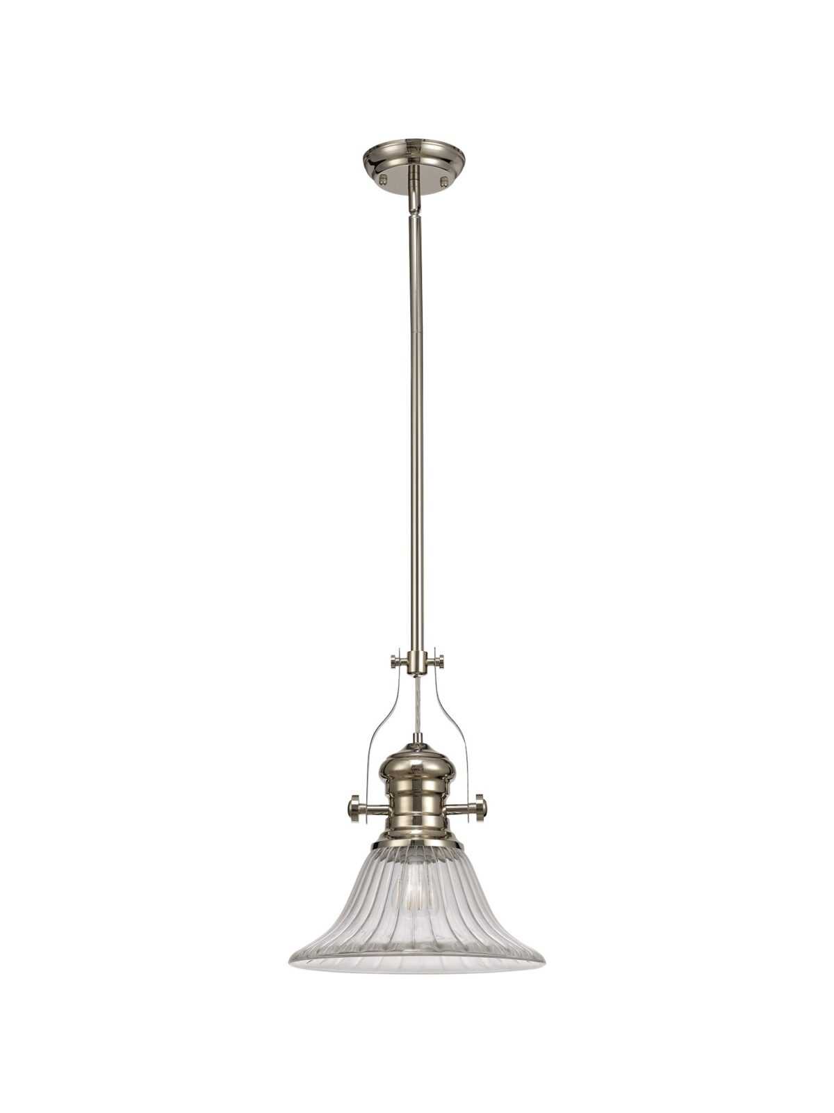 Astrid 1 Light Telescopic Pendant E27 With 30cm Bell Glass Shade, Polished Nickel/Clear