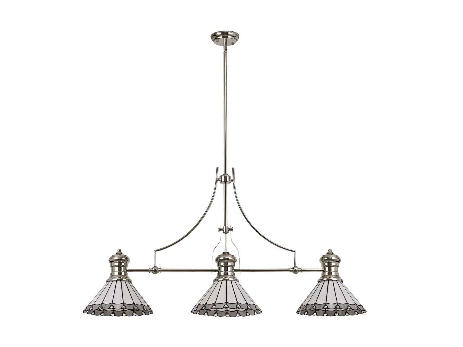 Astrid/Tiff-19 3 Light Telescopic Pendant E27 With 30cm Tiffany Shade, Polished Nickel/Grey/Cream/Crystal