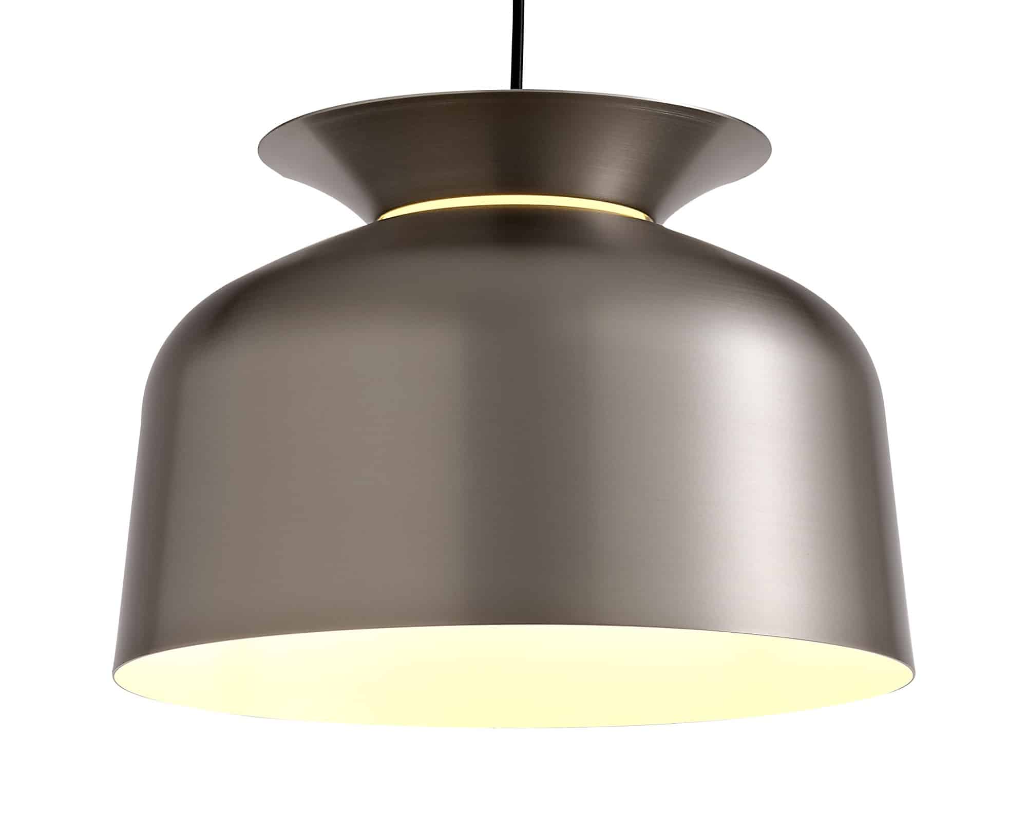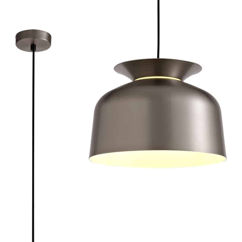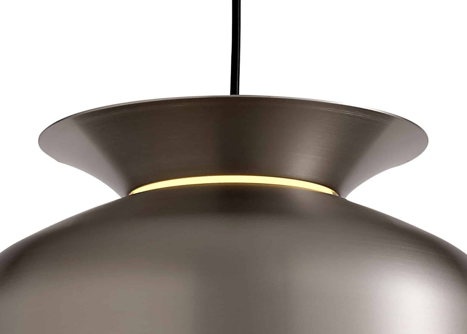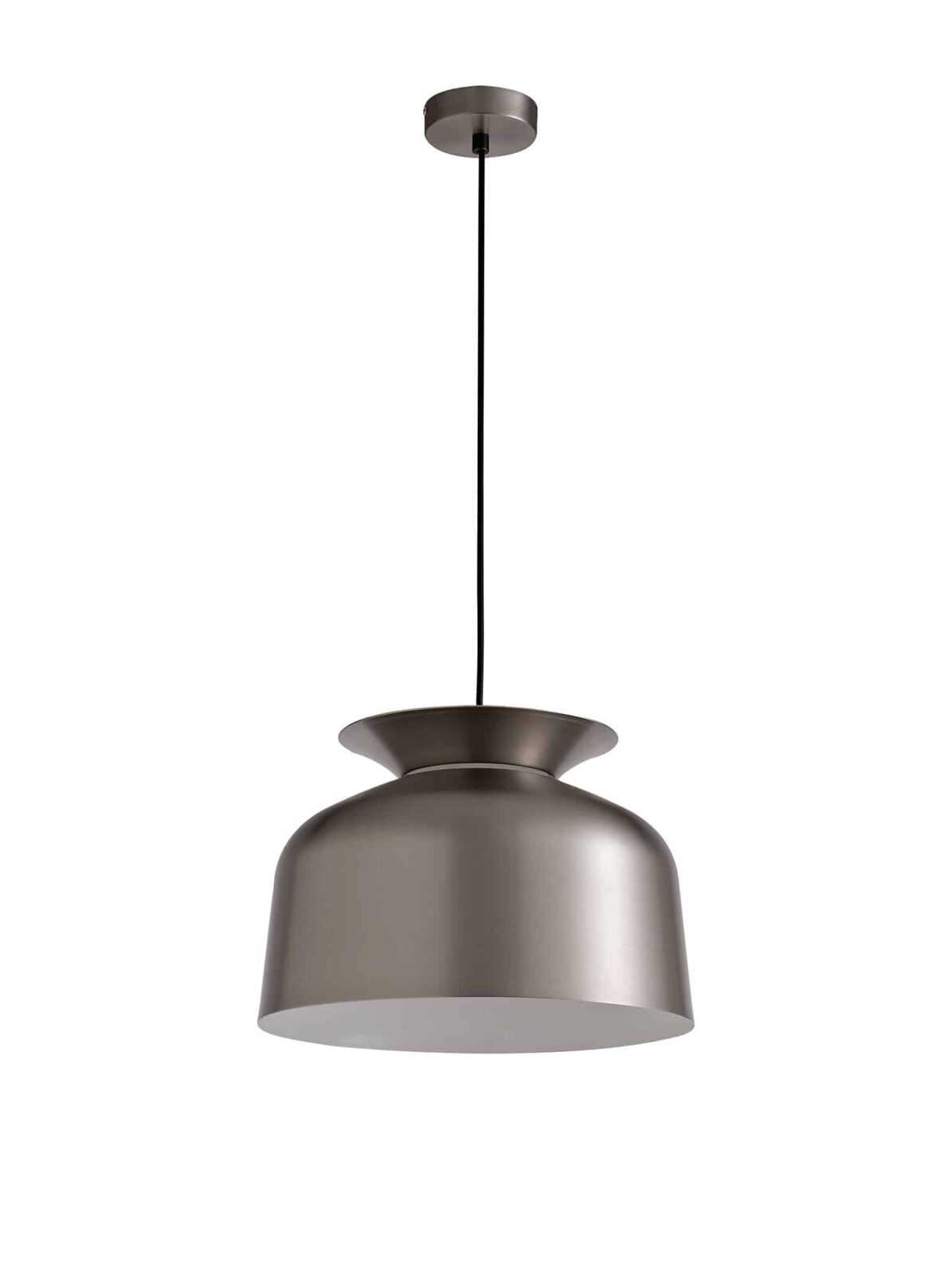 Austin is a collection of single pendants, the frames are formed from a larger dome shape and a shallow dish both positioned in different directions to outline the shape of a serving bowl. The slim diffuser where each piece meets has been added to give a soft halo of light in-between both shapes projected from the E27 lampholder which dispels the main source of light from the larger open shade.