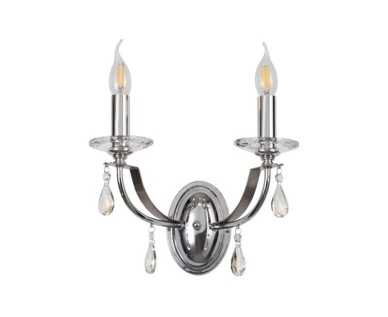 Avilia Wall Lamp 2 Light E14, Polished Chrome/Satin Nickel/Clear Crystal