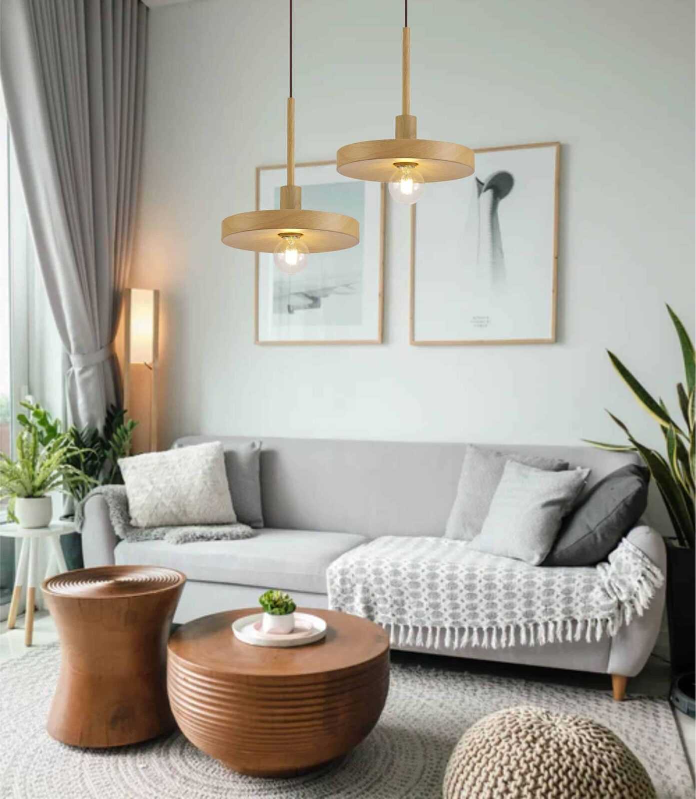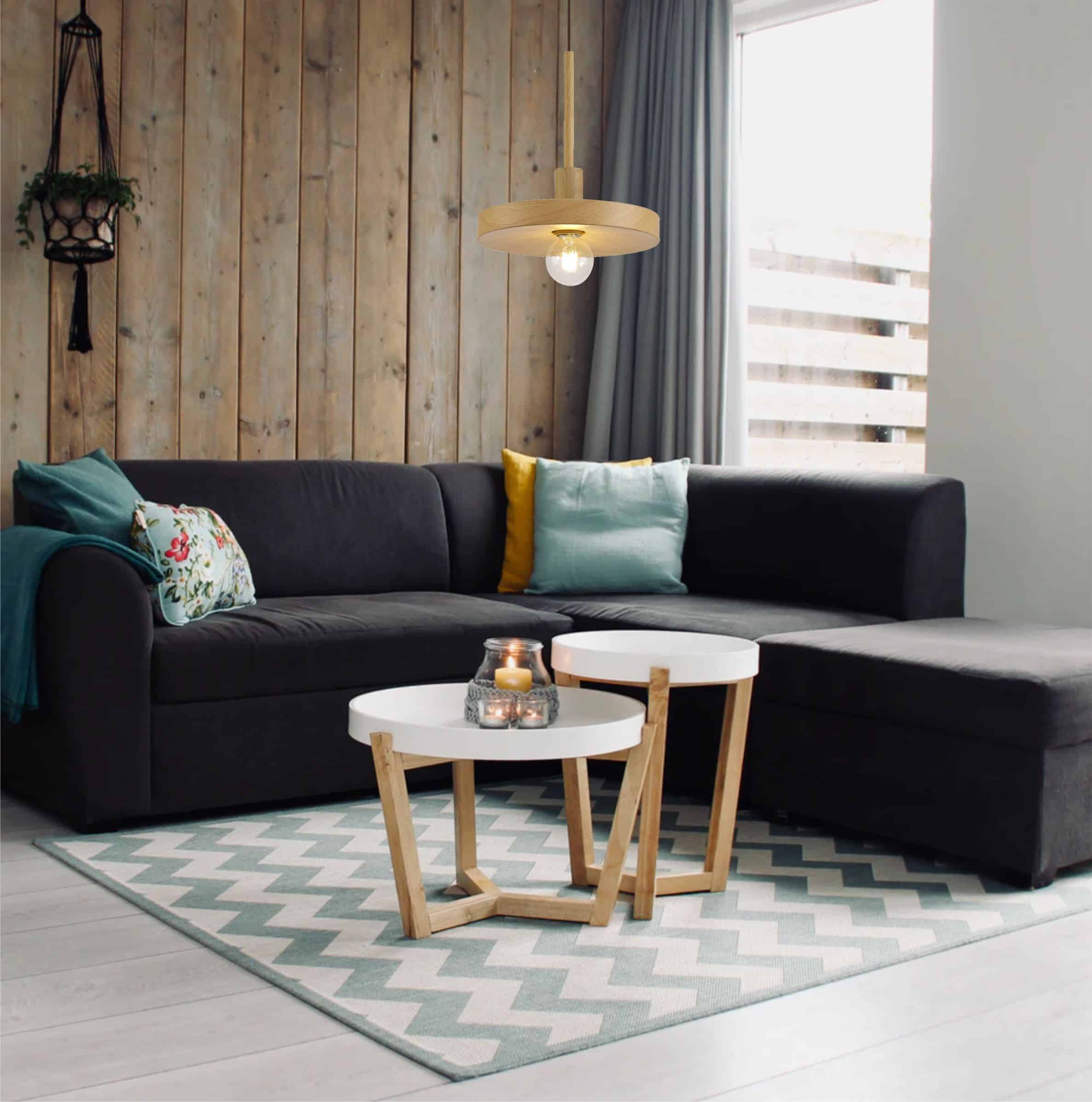 This modern single pendant design uses a smooth, round, shallow frame to hold the E27 lampholder providing substantial presence with its rare wood or marble effect finish without impeding the ambient illumination from the chosen lamp. Belton’s concept permits the maximum lighting output without compromising unique design.
