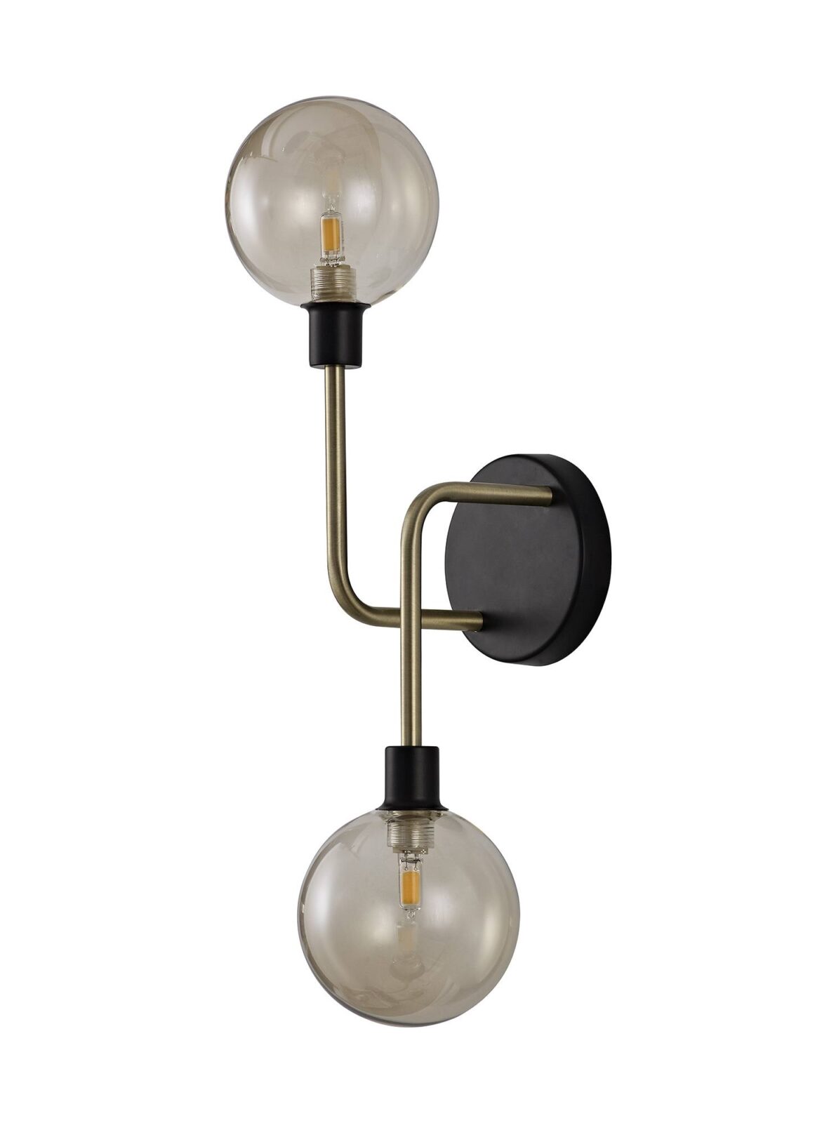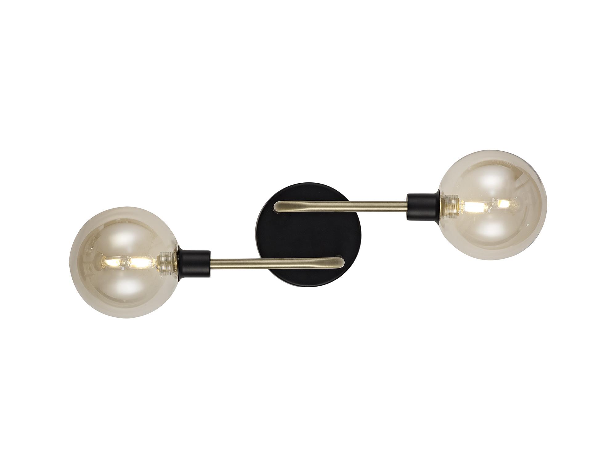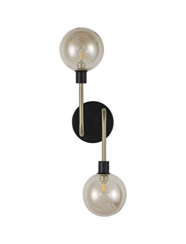 Boata Wall Lamp, 2 Light G9, Matt Black/Antique Brass/Cognac Glass