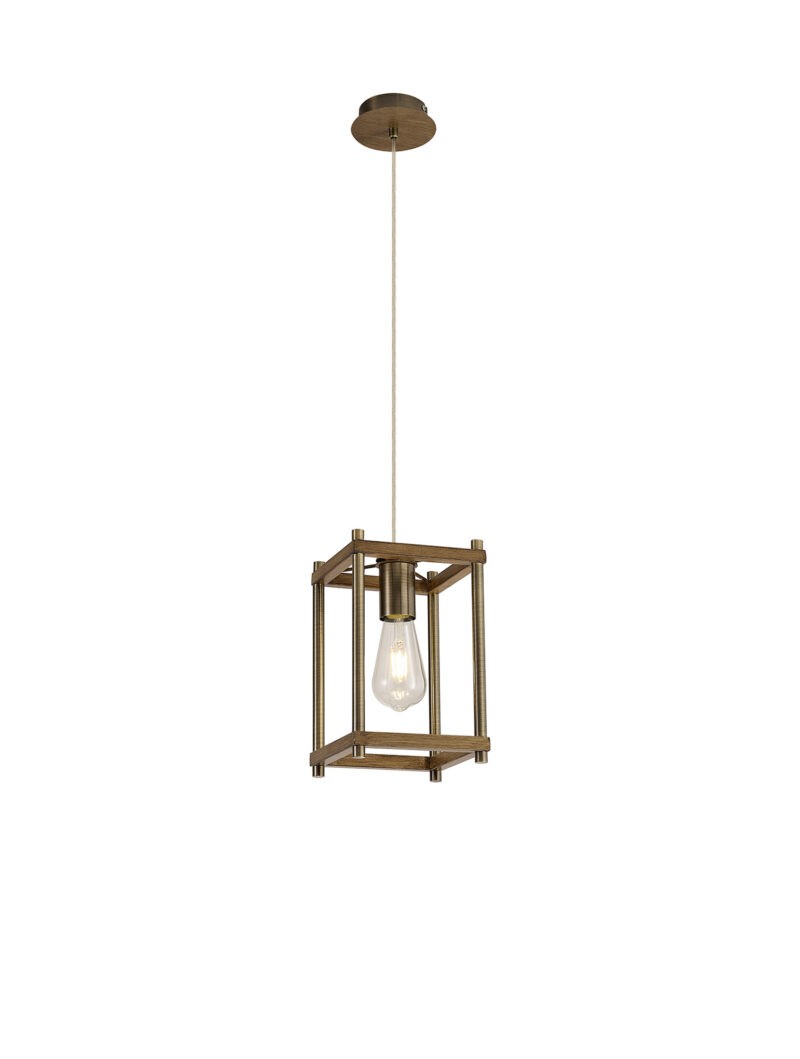Bocage one light pendant. Medium Oak/Antique Brass