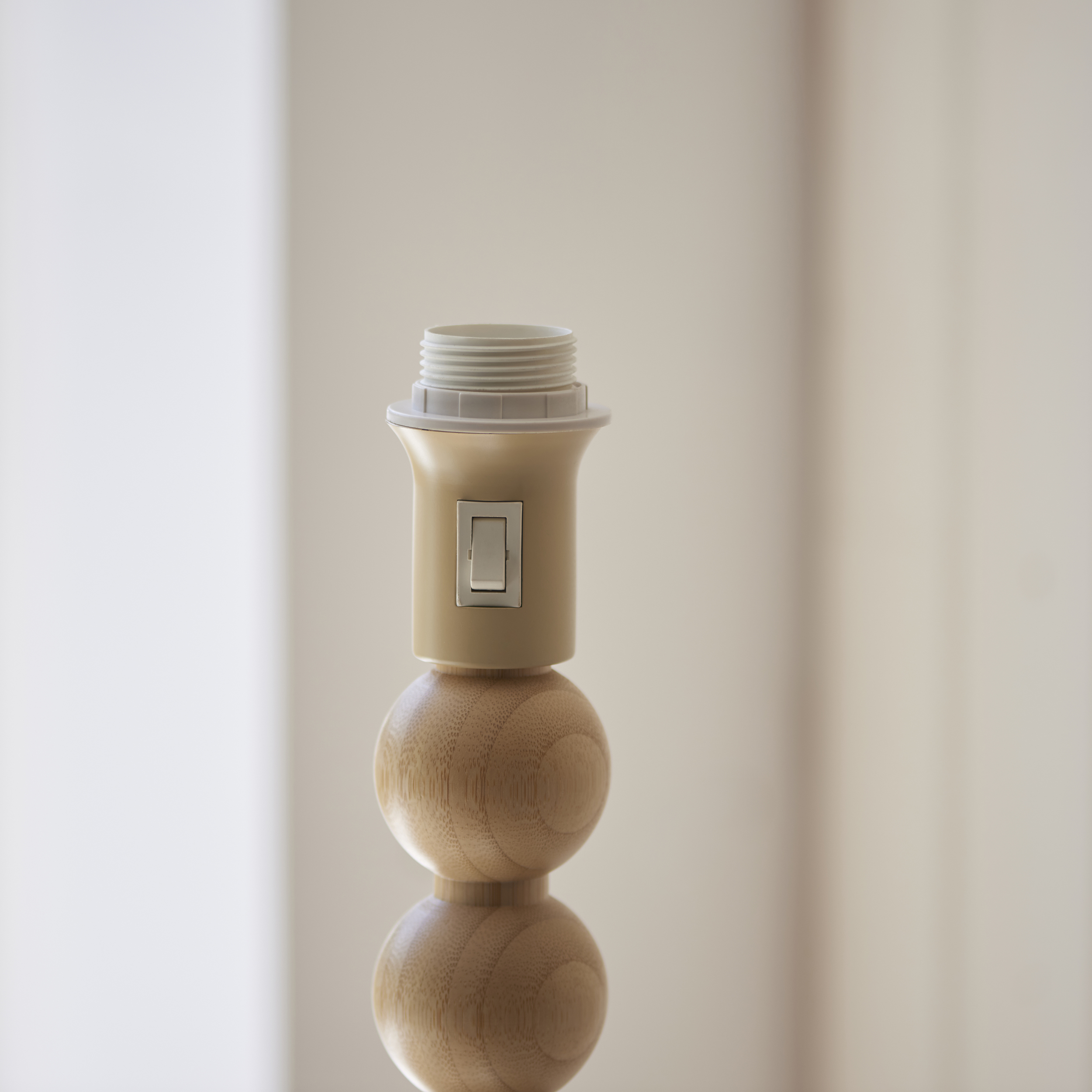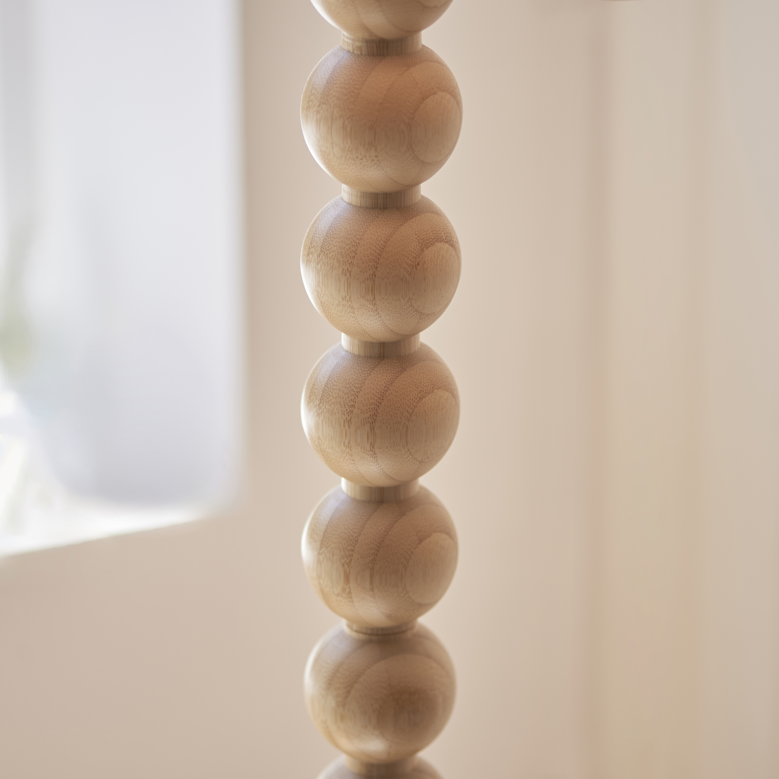 This natural floor lamp, features stacking spheres of bamboo wood, with a versatile design style making it work in both classic and modern interiors. Pair with one of our 40cm decorative fabric shades for the ultimate addition to your home. Natural bamboo floor lamp base Easy to reach E27 on/off lamp holder switch 2 metres neutral colour braided flex to plug Pair with one of our 40cm decorative fabric shades Compatible with E27 LED lamps
