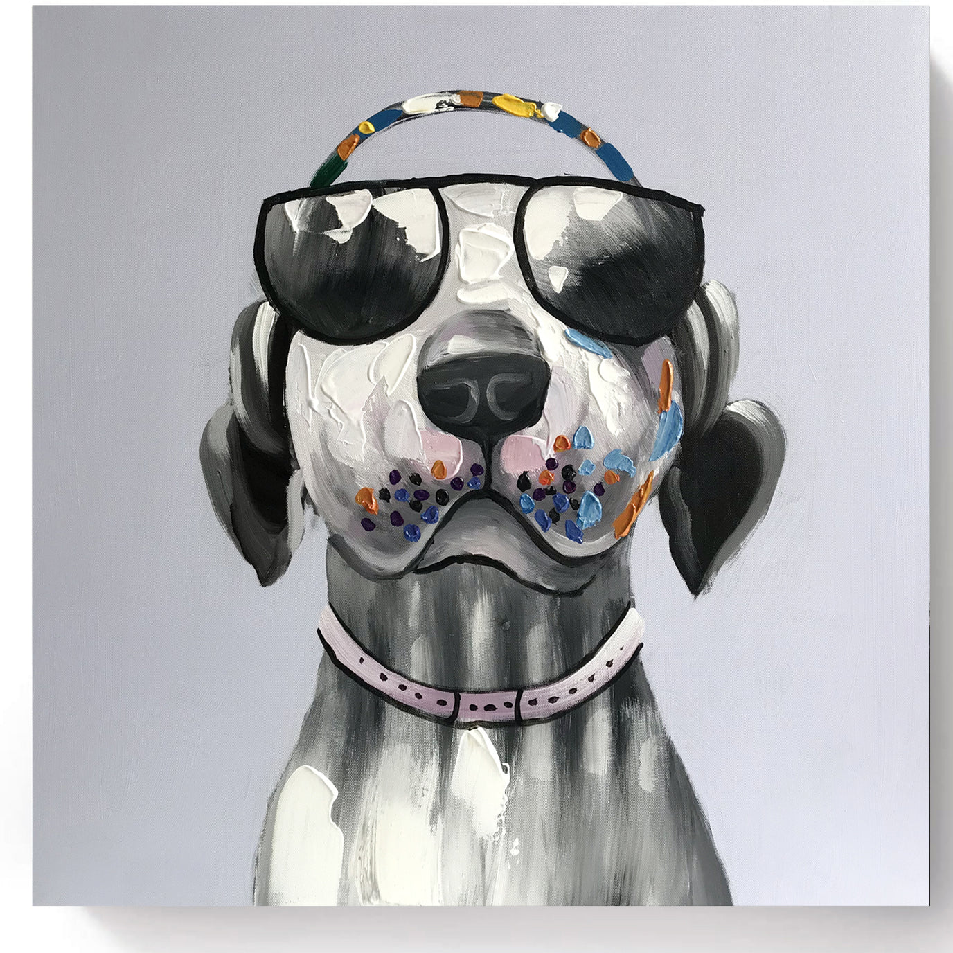 Dog Tuned In Hand painted Wall Art On Canvas This beautiful canvas oil painting of a cool dog wearing headphones will be a delightful addition to any home. Perfect for any dog lover, this piece contributes a touch of fun and whimsical decor that can be appreciated from all angles. Enjoy the great detail and colour provided by the hand painting.