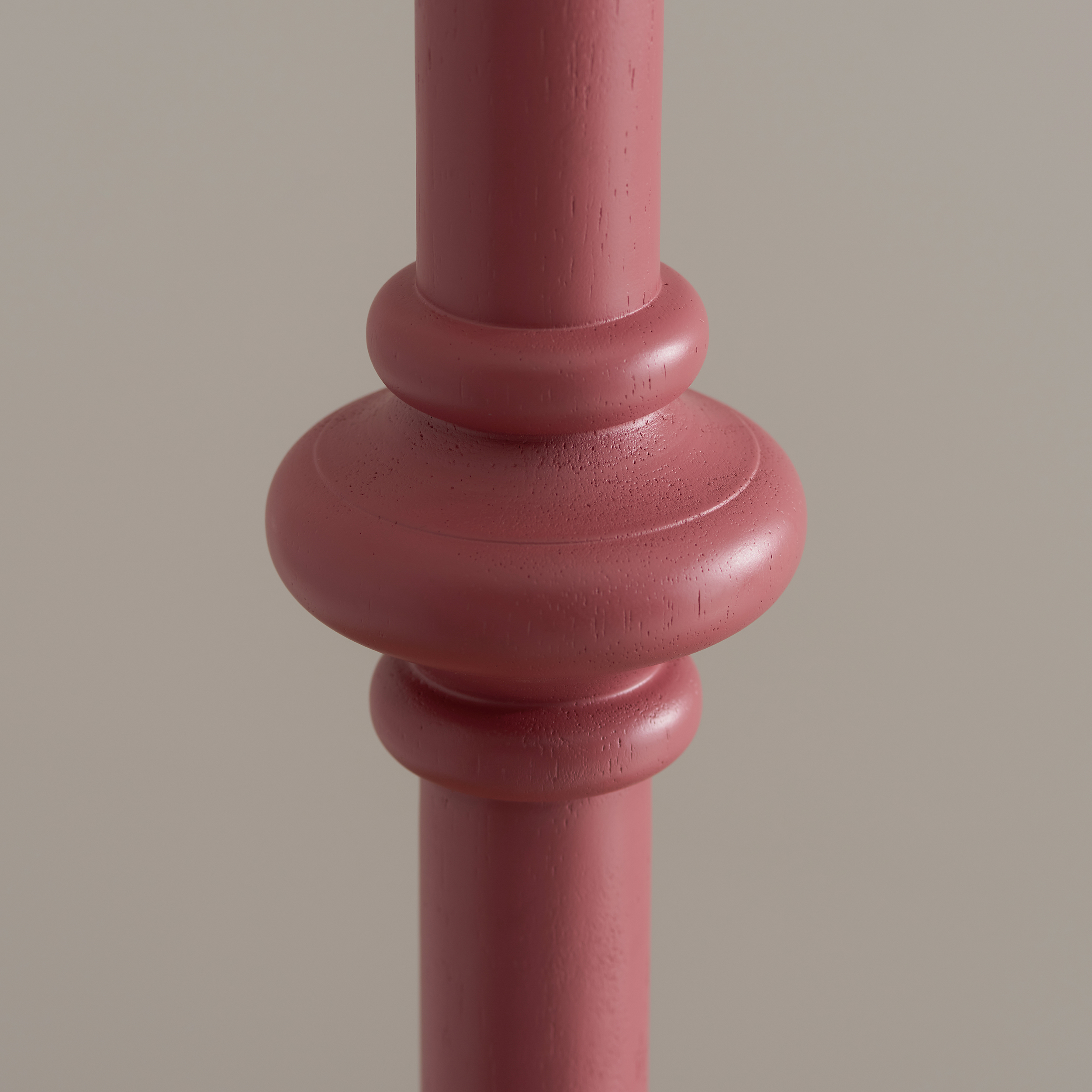 This unique wooden turned spindle floor lamp is inspired by past design styles with a fresh update. Painted in classic satin pink clay with a brass B22 switched lamp holder and grey braided fabric flex. Each product is turned on a wood lathe by hand and will be unique, any variants in finish are part of the individual charm of the product. Pair with one of our 35cm or 40cm decorative fabric shades for a unique classic style. Wooden turned spindle floor lamp Satin pink clay painted finish Made from sustainably sourced wood Switched brass B22 lamp holder 2 metre grey braided fabric flex to plug Pair with one of our 35cm or 40cm decorative fabric shades Compatible with B22 LED lamps