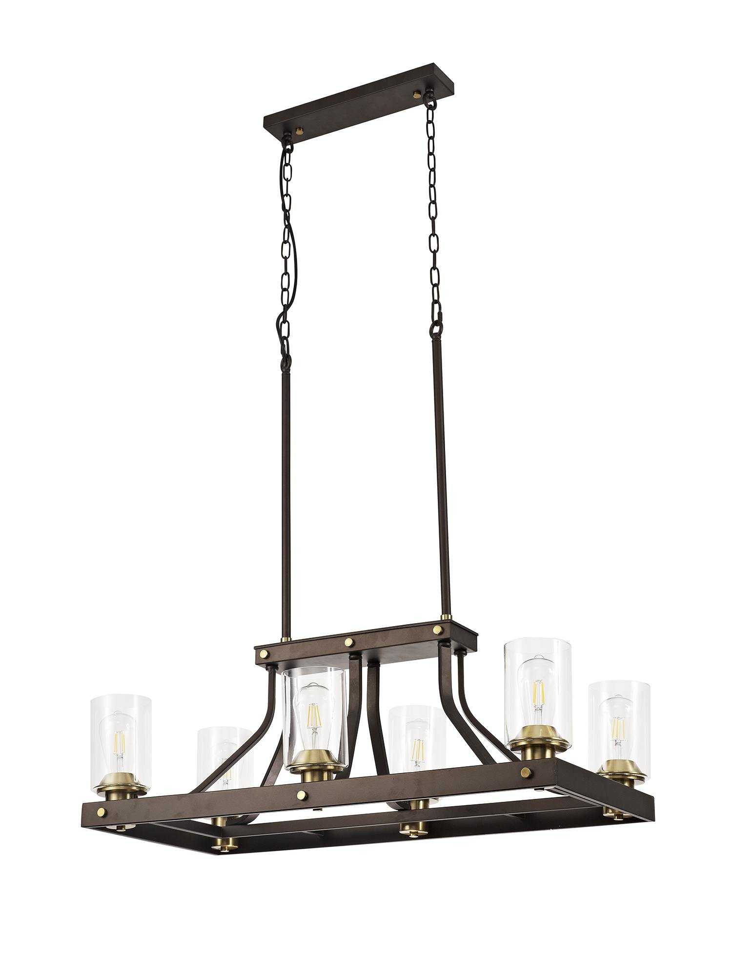 Castilla Linear Pendant 6 Light E27, Brown Oxide/Bronze With Clear Glass Shades