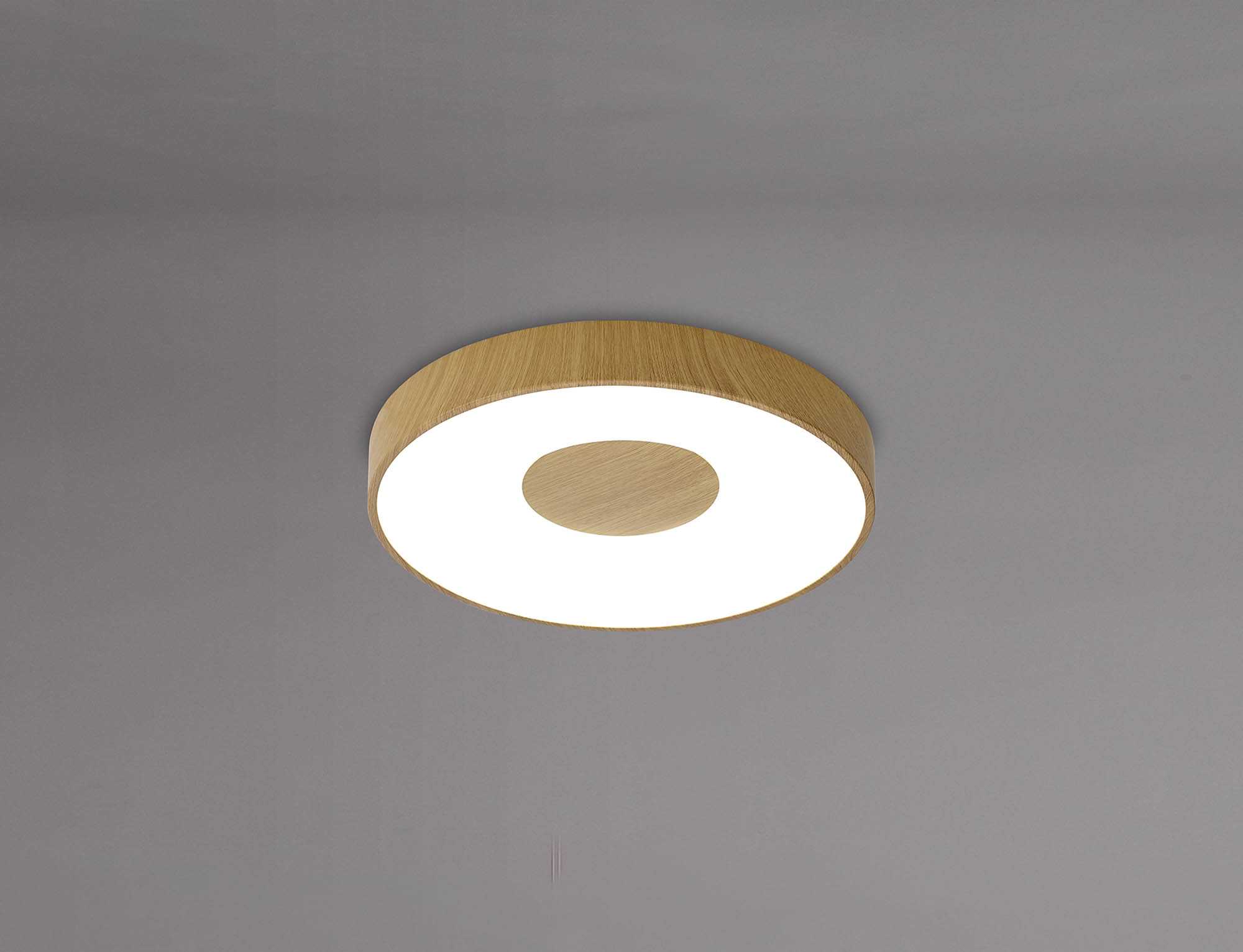 Coin Round Ceiling 56W LED With Remote Control 2700K-5000K, 2500lm, Wood Effect, 3yrs Warranty.  IP20 Coin is a remote controlled tuneable range of round and square LED ceiling lights. As good things come in threes the Coin collection is no exception to this rule with three size options available. The largest of these sizes boasts an impressive 100W output with 6000 lumens, ideal for larger room settings. Each size can be chosen in one of four colour finishes; white, black, gold and wood effect with the round version also offering a sand brown finish. Mantra’s reputable high quality LED technology provides reassurance that a longevity of use can be sustained.