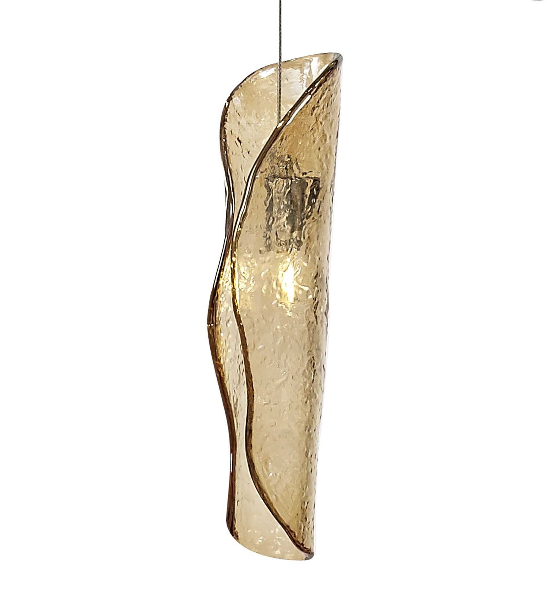 The Conway pendant 5M light is a stylish and eye-catching way to add light and ambiance to any room. The wrapped glass pieces diffuse the light emitted from the G9 lampholders, creating a soft and inviting glow. The clear, amber, and smoked glass create a picturesque collection that shimmers beneath the colored tint like light on water. The round and oval pendants combine all three glass colors, making it a versatile lighting option for any room.