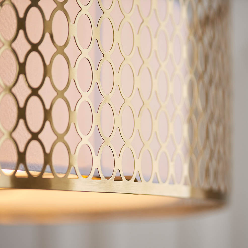 | Colour Finish | Gold effect plate, white fabric & frosted glass |