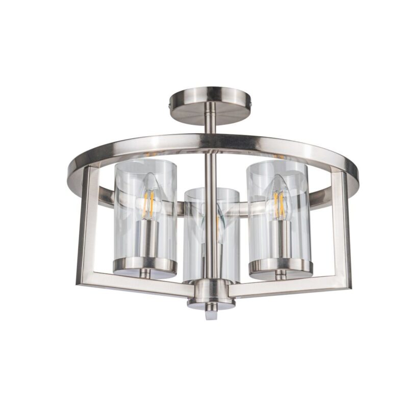 Elevate your interior with the Costello 3 Light Semi Flush in Satin Chrome, a vintage-inspired lighting fixture that seamlessly blends classic design with timeless charm. Its elegant satin chrome finish adds an air of sophistication, creating a captivating centerpiece for any room. Featuring three radiant light sources, it envelops your space in a warm and inviting glow, making it ideal for dining areas, kitchens, or any space in need of a touch of enduring elegance. The Costello Semi Flush expertly harmonizes vintage aesthetics with modern allure, offering both style and functionality.
