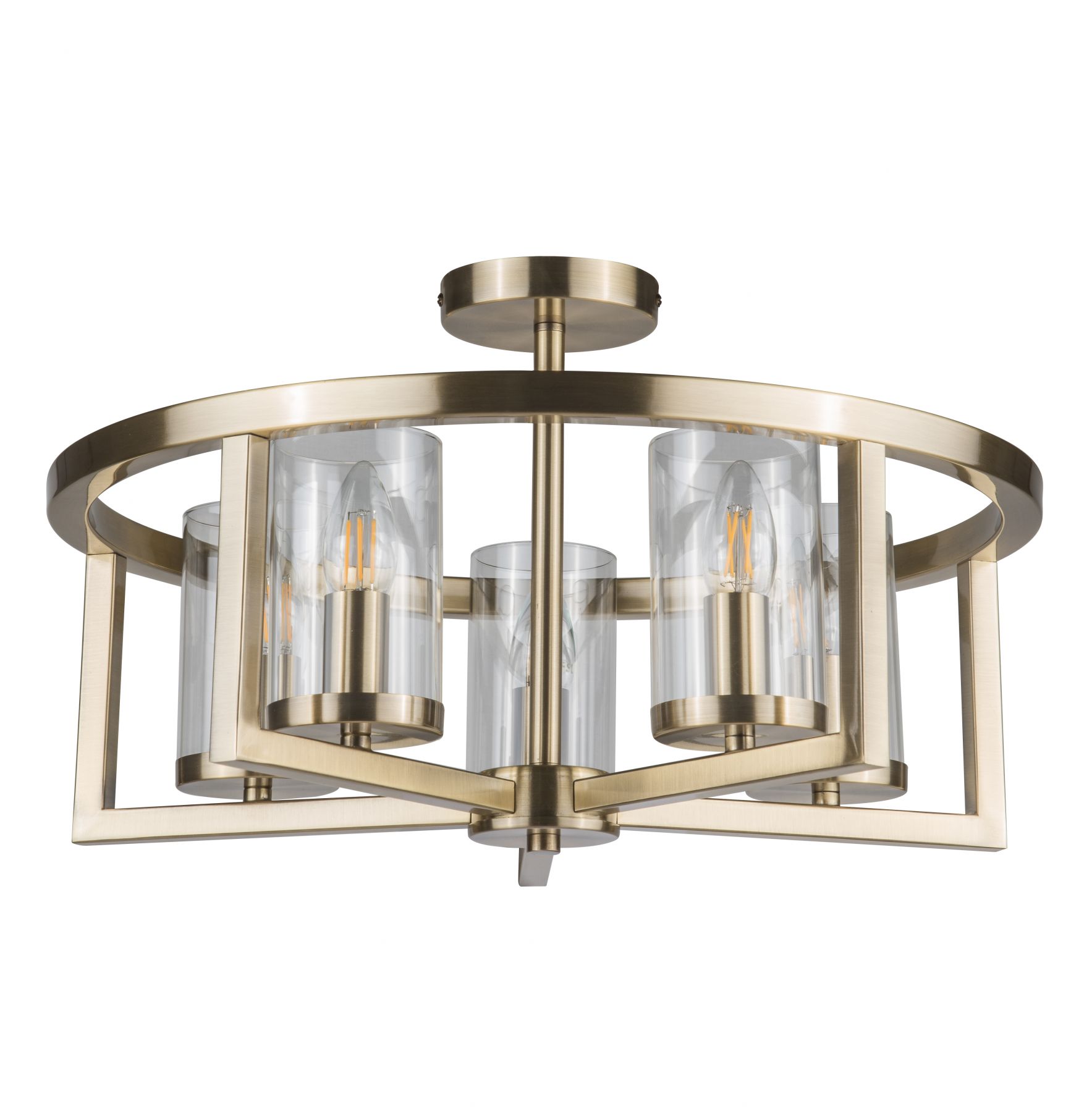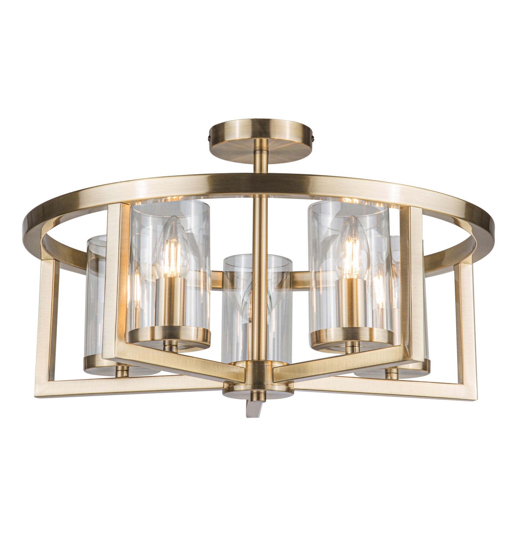 Elevate your interior with the Costello 5 Light Semi Flush in Antique Brass, a vintage-inspired lighting fixture that seamlessly blends classic design with timeless charm. Its elegant antique brass finish adds an air of sophistication, creating a captivating centerpiece for any room. Featuring five radiant light sources, it envelops your space in a warm and inviting glow, making it ideal for dining areas, kitchens, or any space in need of a touch of enduring elegance. The Costello Semi Flush expertly harmonizes vintage aesthetics with modern allure, offering both style and functionality.