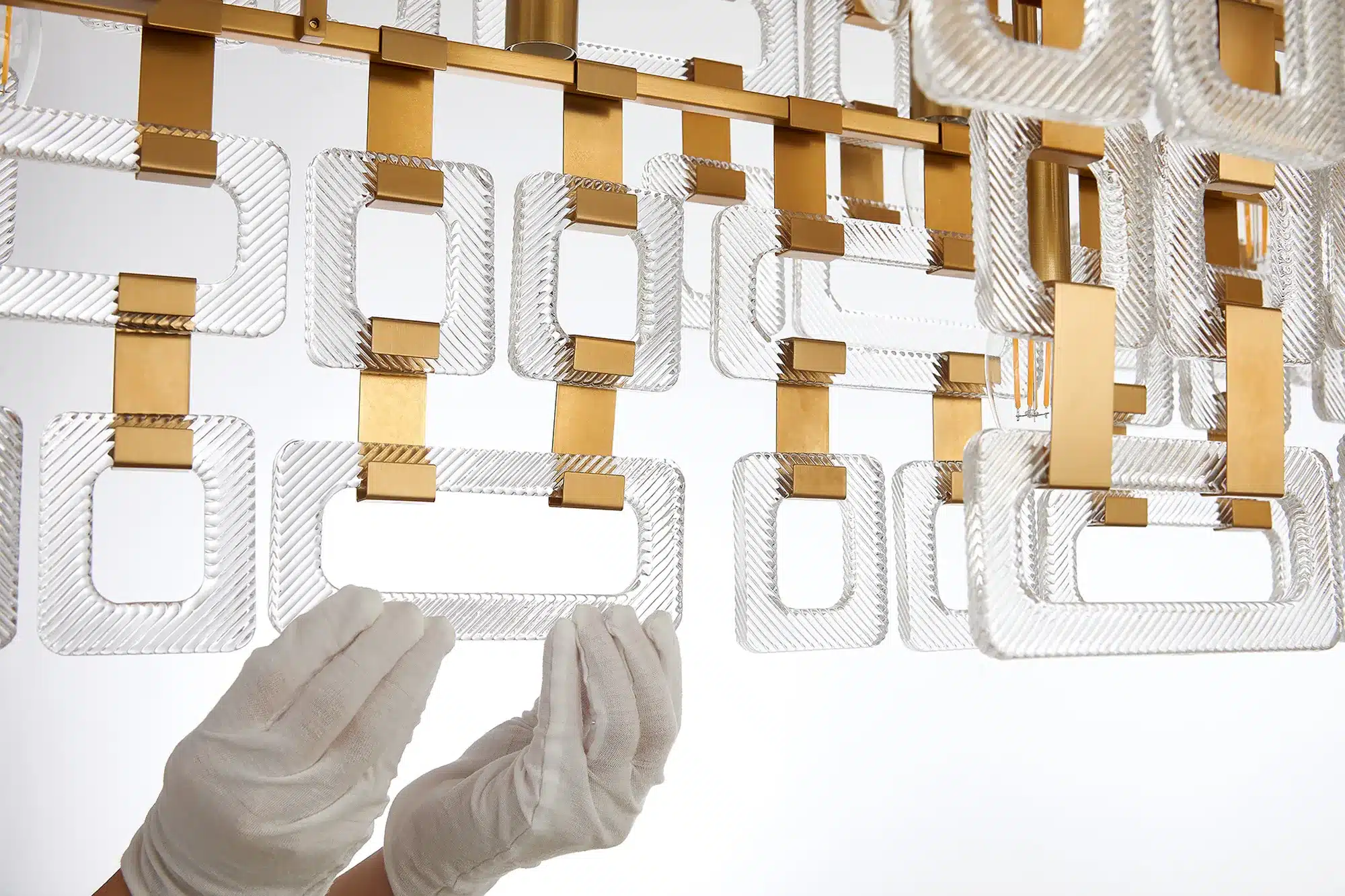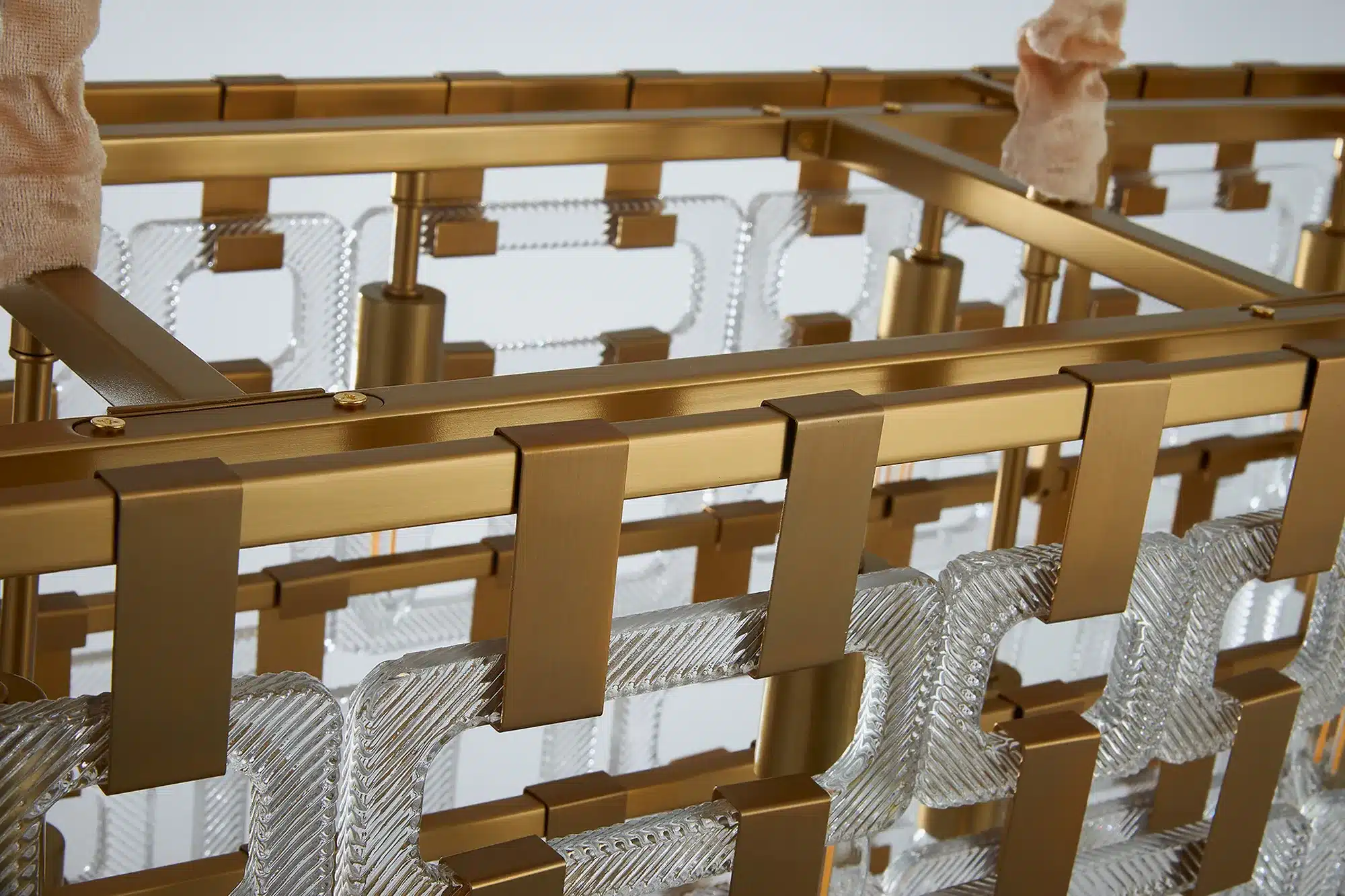 • Chain-mail inspired design with clear glass panels