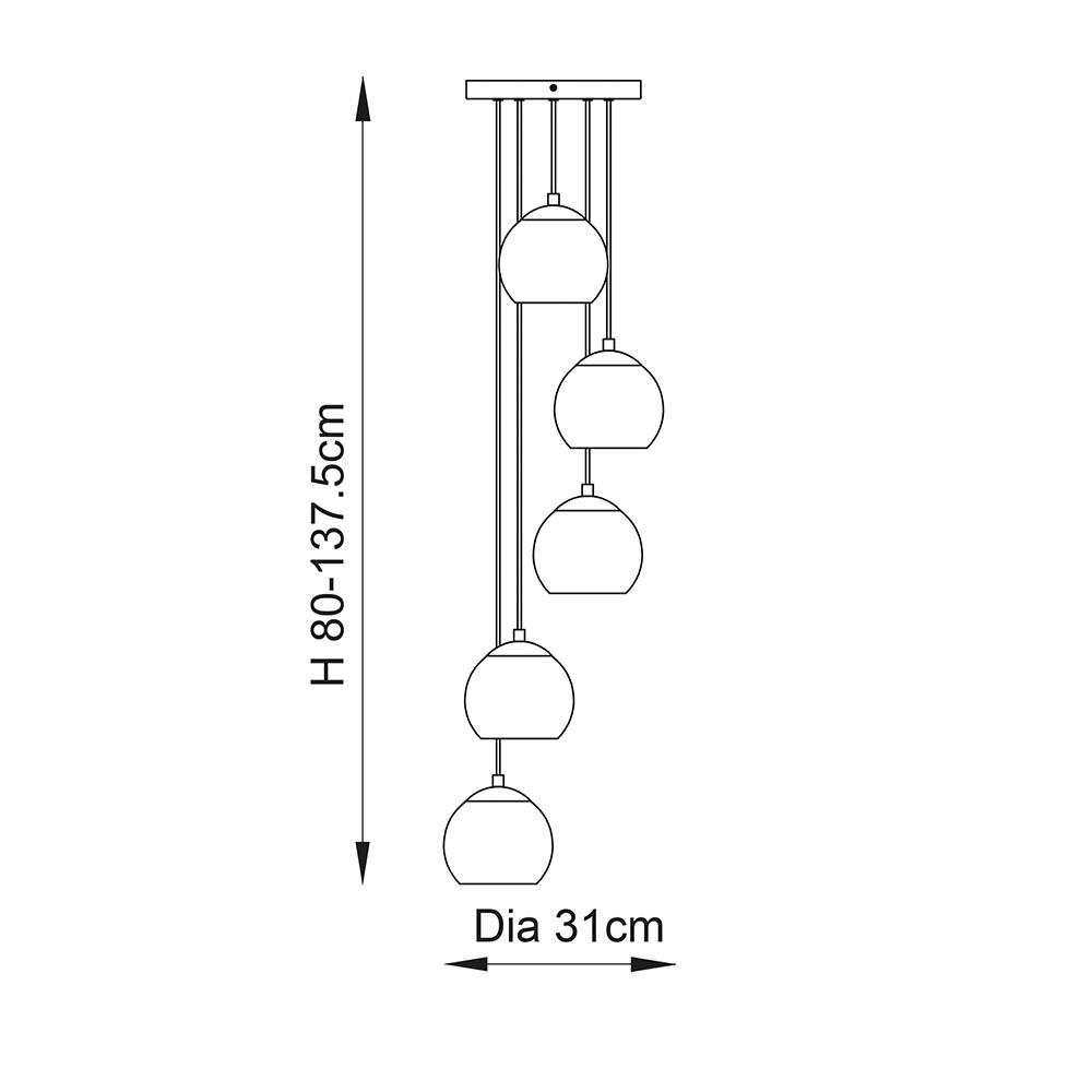 A modern classic 5 light pendant with brushed brass plated finish and stunning champagne lustre dimpled glass shades. Adjustable in height to create the perfect hanging pendant. This pendant is also dimmable. Modern classic design style Satin brass plated finish Champagne lustre dimpled glass shades Adjustable height 0.4 to 1.2 metre clear cable Dimmable Perfect for use with E14 LED lamps