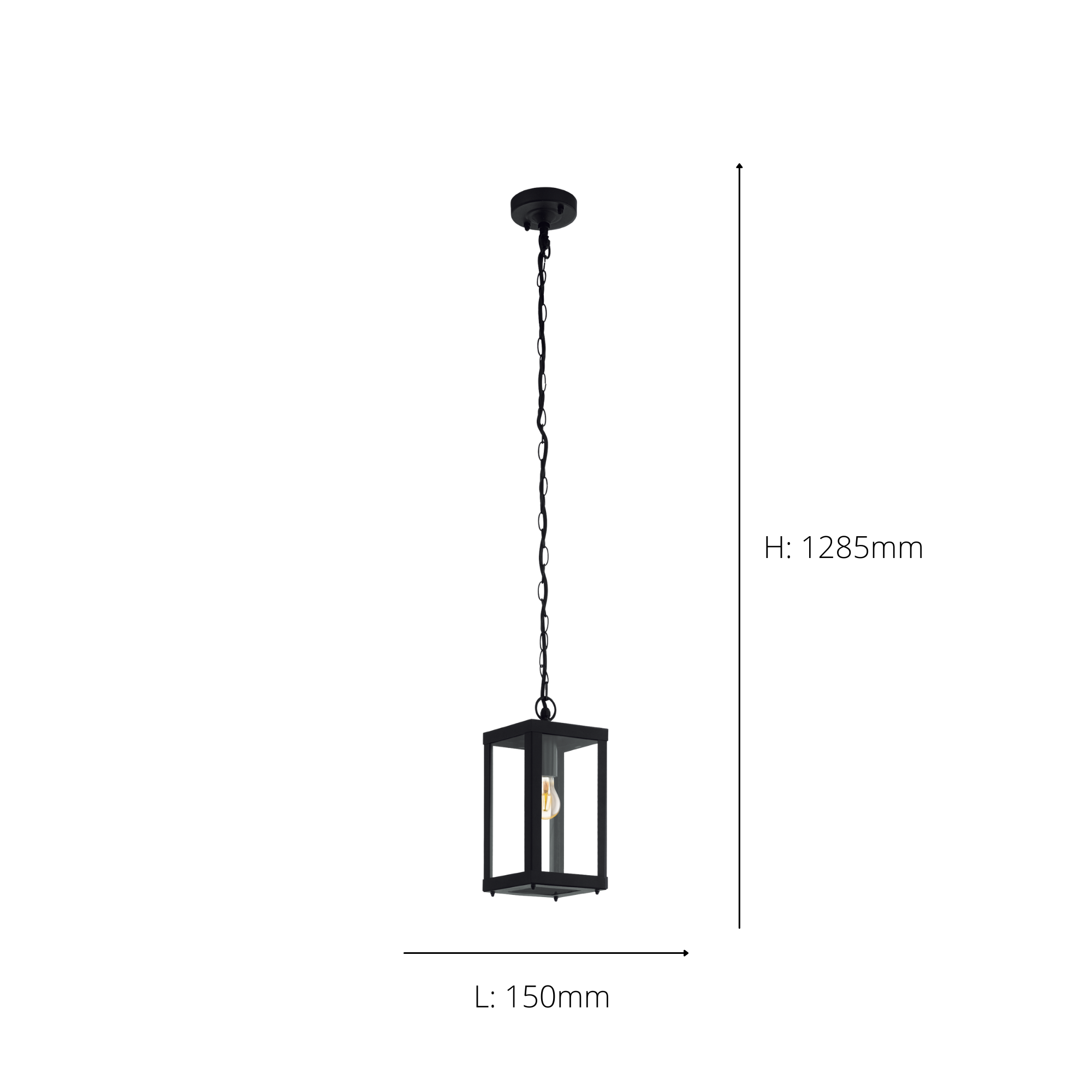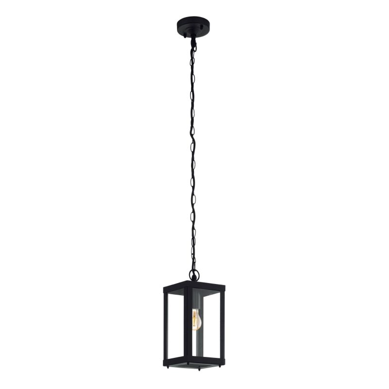 EGLO Alamonte 1 Single Black Steel & Glass Caged Exterior Pendant