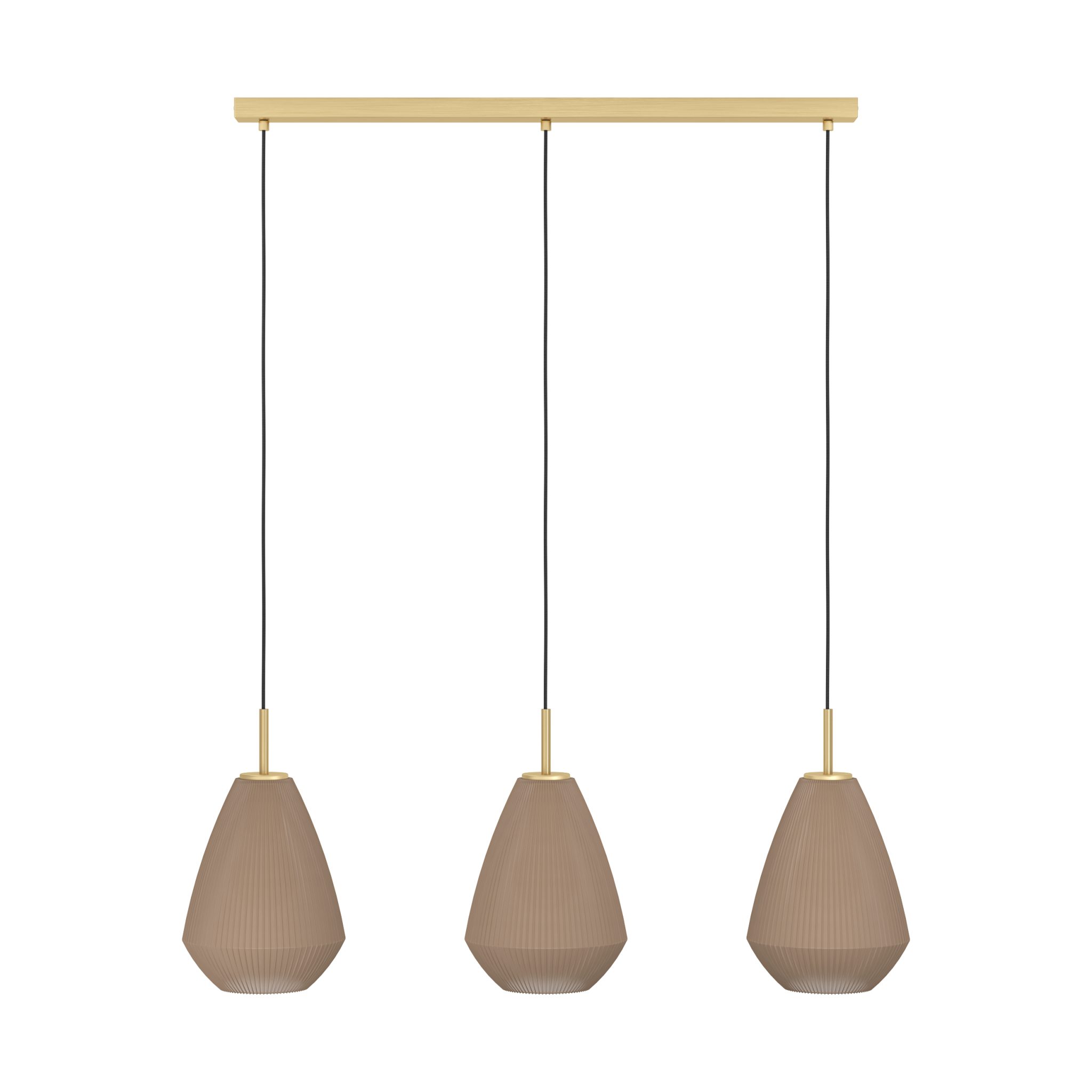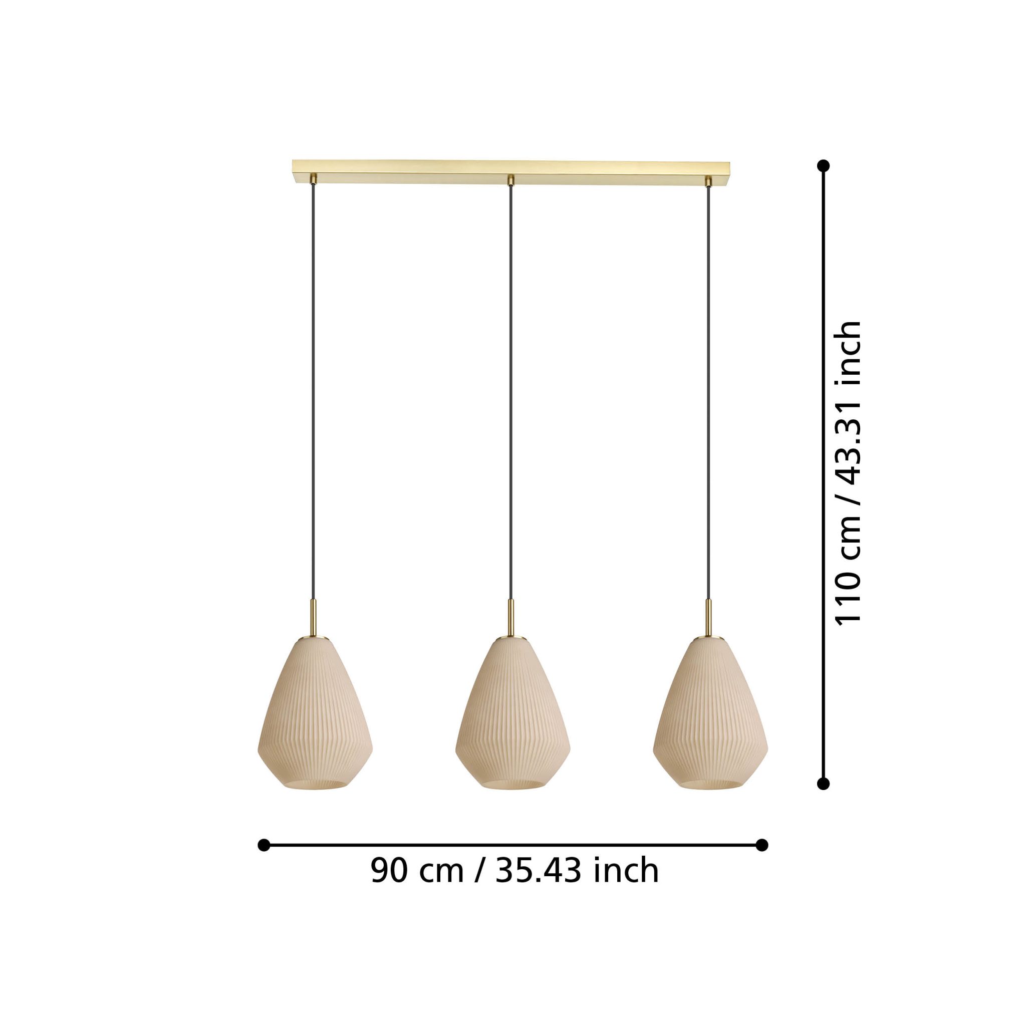 Introducing the Caprarola pendant light, a stylish addition to any modern home. It features three conical satin glass lampshades in a lovely sand-coloured finish, suspended from an elegant brass-coloured metal canopy. Perfect for contemporary interiors, this pendant light provides cosy ambient lighting for any room, whether in the living room or above the dining table. Please note, the light has E27 lamp holders and requires 3 x E27 lightbulbs, which are not included.