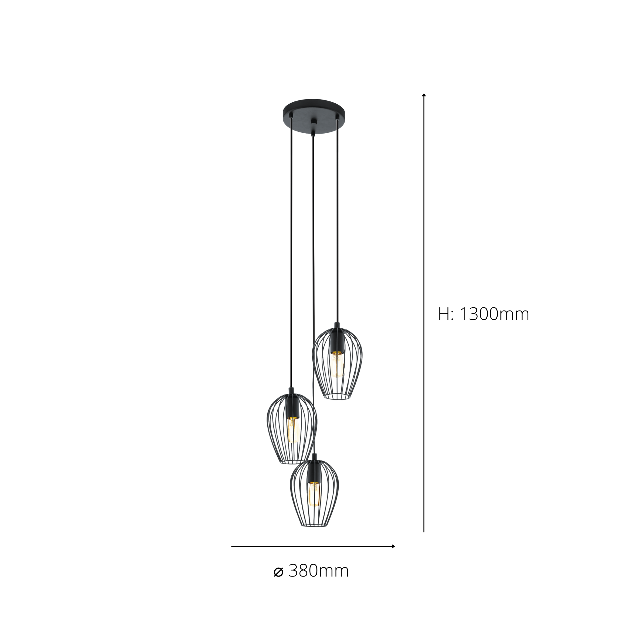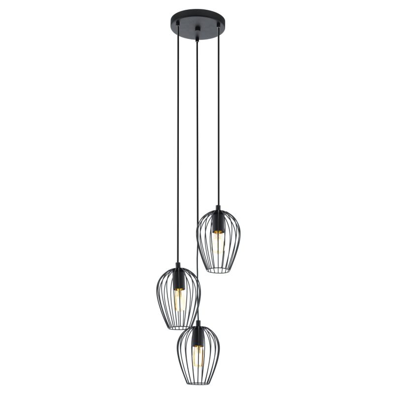 EGLO Newtown Vintage Black Caged Steel Cluster 3-Light Pendant