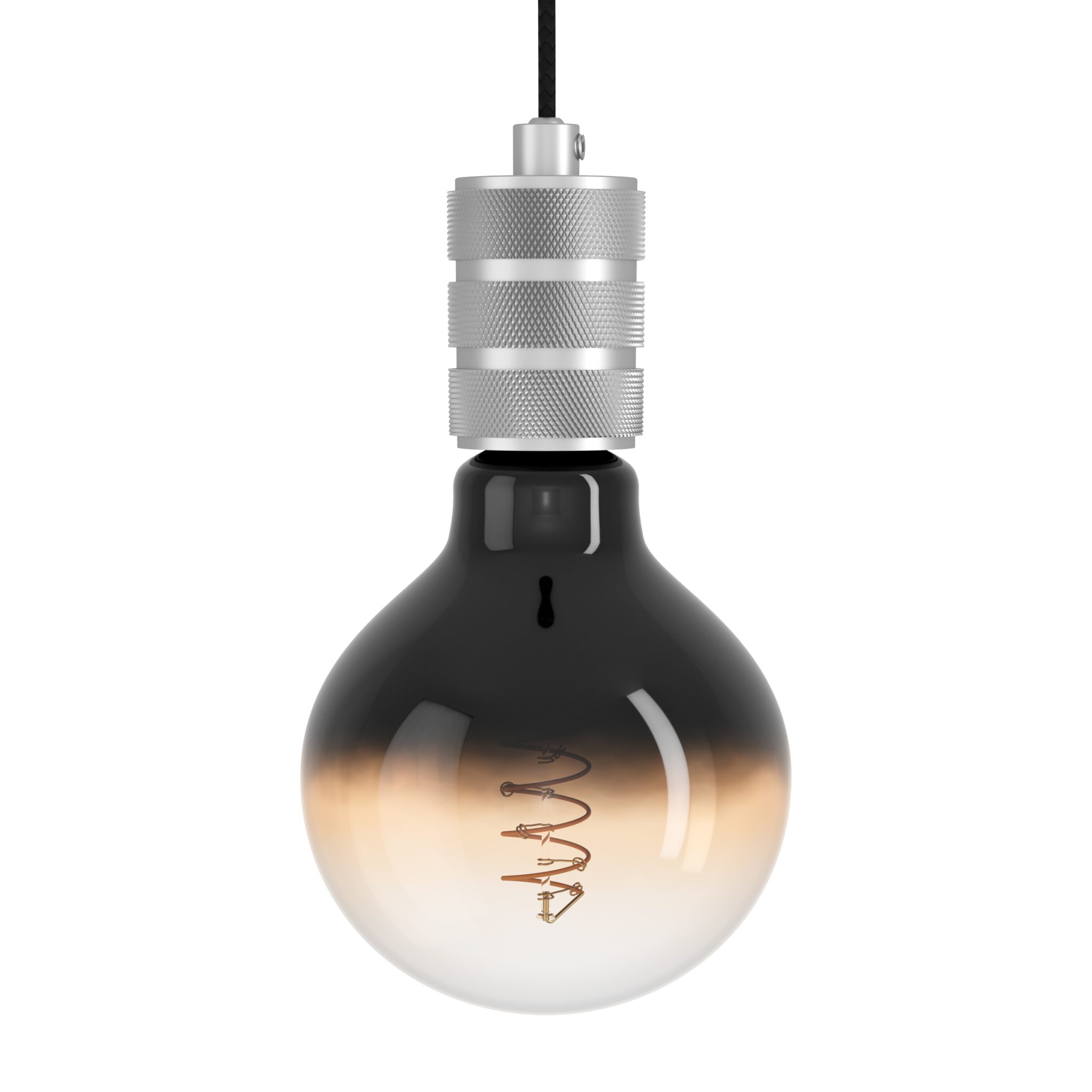 The YORTH pendant light features a ribbed metal lamp holder with a silver finish, black textile cable and a black metal canopy. The pendant light can be paired with different lightbulb styles to blend seamlessly with almost any trend, including vintage, industrial and modern. The minimalist pendant light works well in any living space, whether over the kitchen counter, in the living room, dining room, or above the bedside table. The pictured filament lightbulb is not included. The product has an E27 lamp holder and requires an E27 lightbulb. Requires 1 x E27 lightbulb IP20 rating Steel structure Silver finish Exposed lightbulb Minimalist design Perfect for above the kitchen counter, in the living room, dining room Complements modern, vintage and industrial interiors