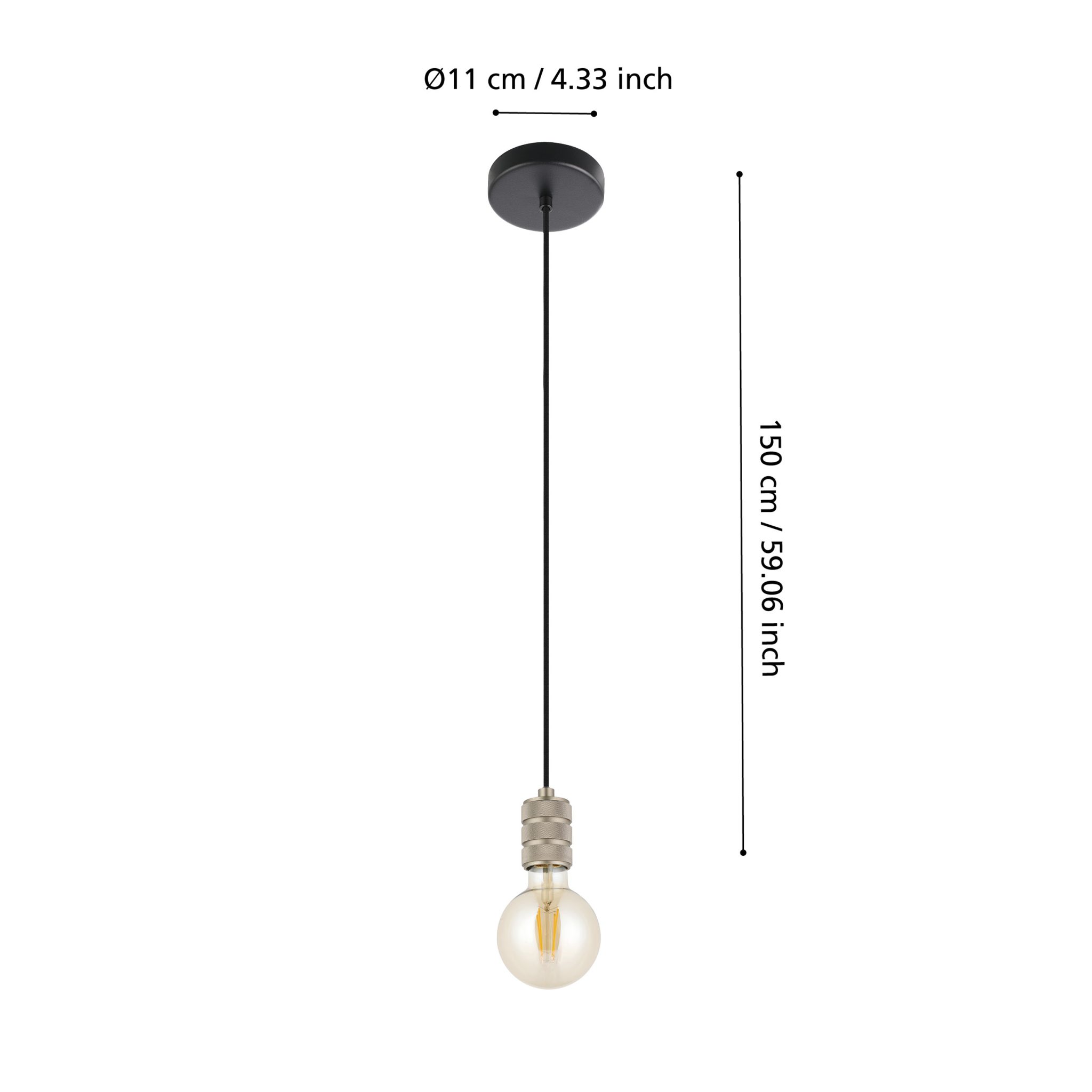 EGLO Single Pendant Light E27 Black Silver YORTH