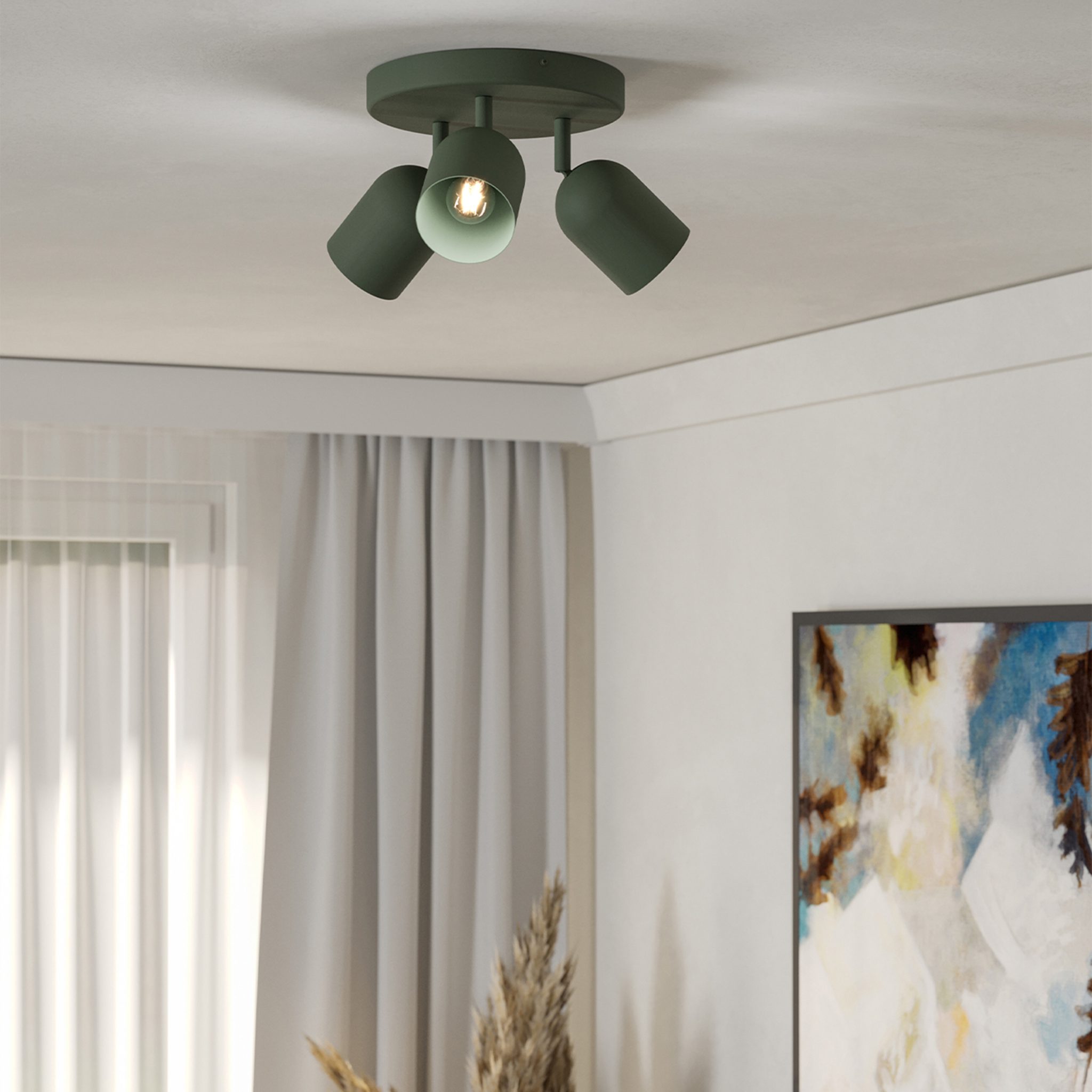 EGLO Tilston Steel Minimalist Triple Ceiling Spotlight, Green