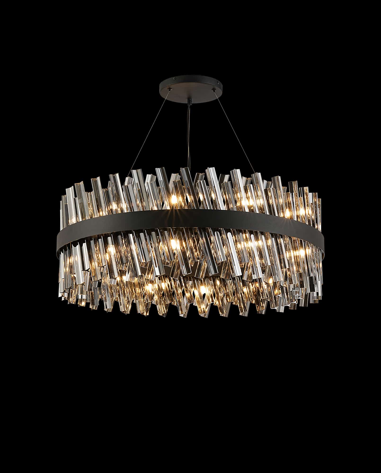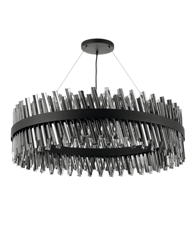A beautiful pendant with 24 Light G9 bulbs. Made with a satin black/smoke combination.