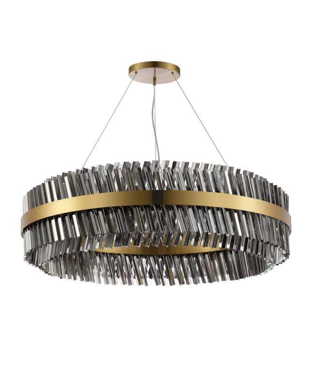Elevate your space with the Estelle collection. Its intricate design, along with the variety of choices available, ensures a captivating visual experience. The exquisite combination of brass and smoke adds an elegant touch to any interior, transforming your space into a stylish environment. Discover the beauty and versatility of the Estelle pendant and create a lighting masterpiece that leaves a lasting impression. Bulbs for the Estelle can be purchased