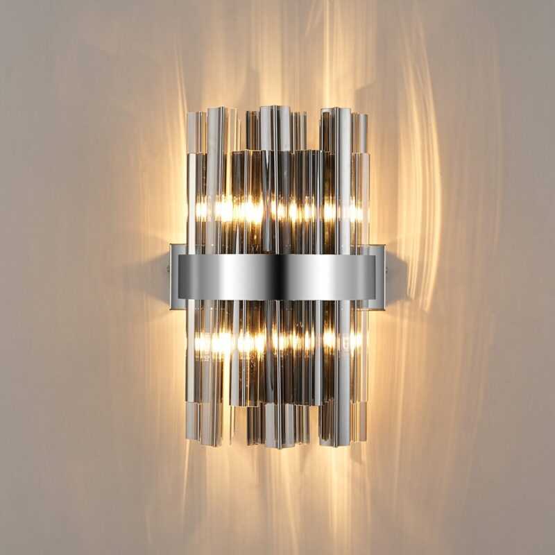 The beautiful Estelle wall light with 4 G9 bulbs. Made with a Polished Nickel/smoke combination.