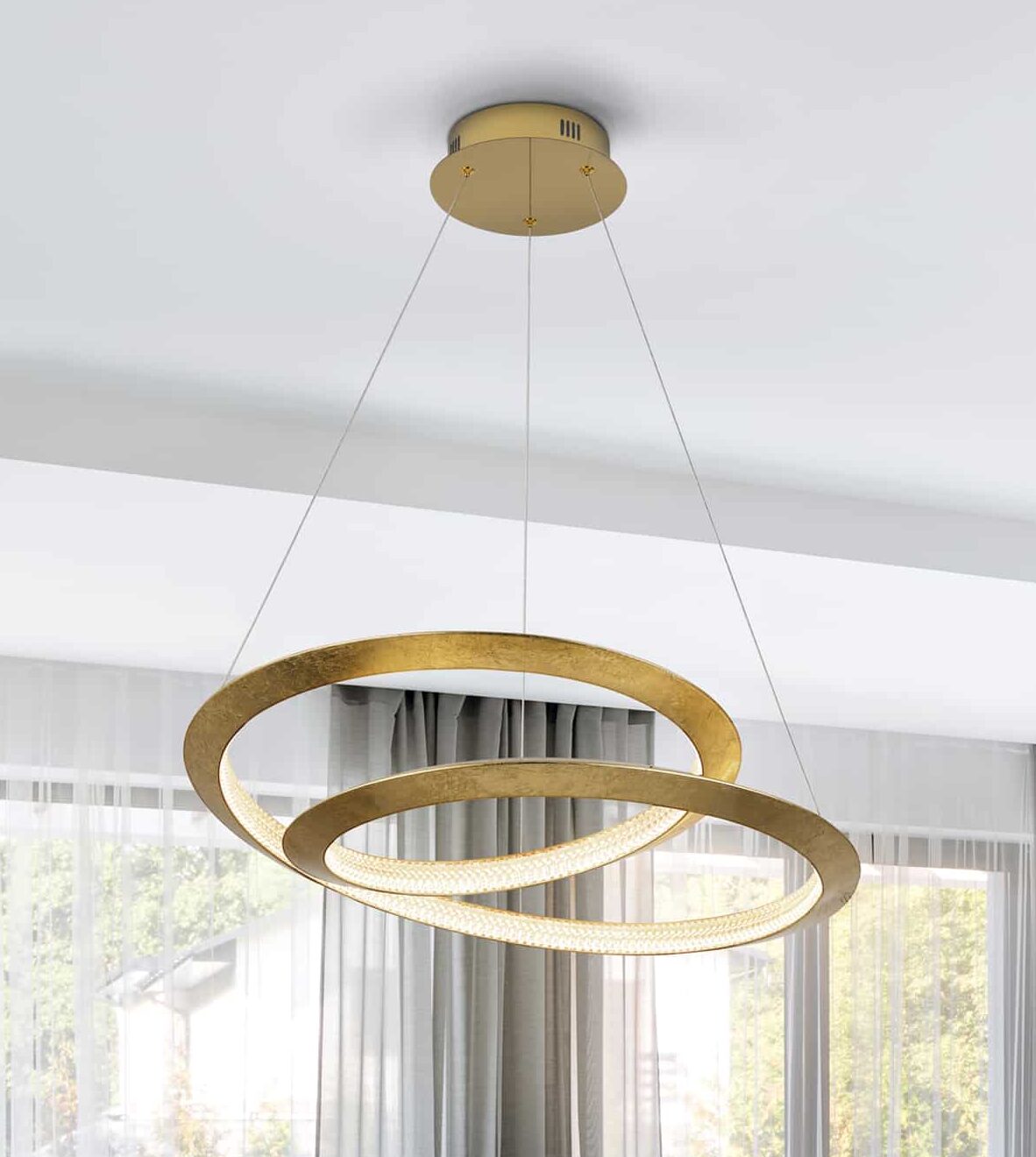 Eternity Lamp. Crafted from metal with exquisite gold leaf finish and gold plating, complemented by a clear acrylic diffuser. 3000K 45W LED