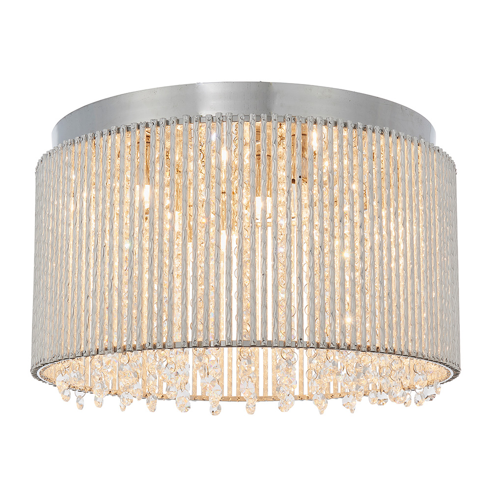 The perfect opulent, Galina flush ceiling light. Create striking light patterns with an intricate mix of high quality crystals housed within decorative twisted polished chrome rods.  The perfect centrepiece for the most loved rooms of your home.