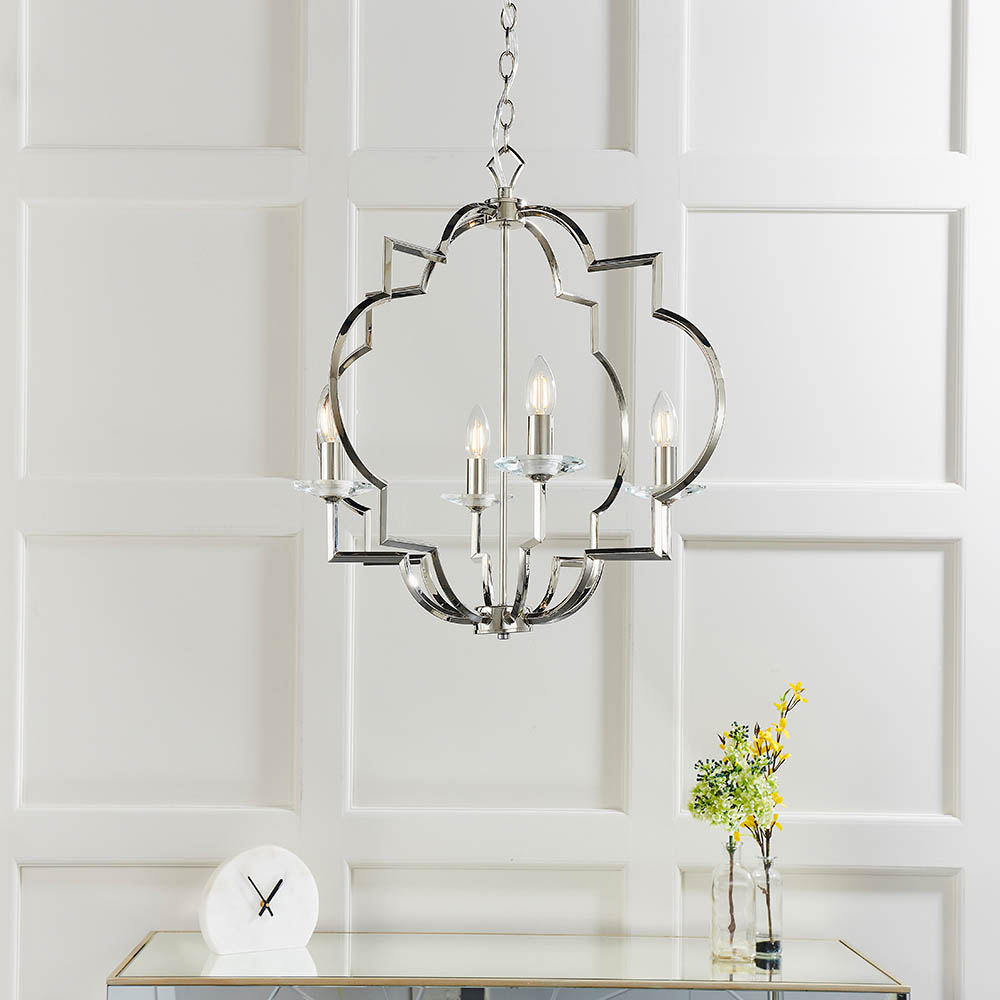 The Garland is a stunning classic pendant. The eye of the beholder will clearly see the understated beauty in the elegant and shapely polished effect framework and crystal glass detailing. Polished nickel and clear crystal glass finish High quality K5 crystals bobeches Height adjustable Dimmable Compatible with LED lamps