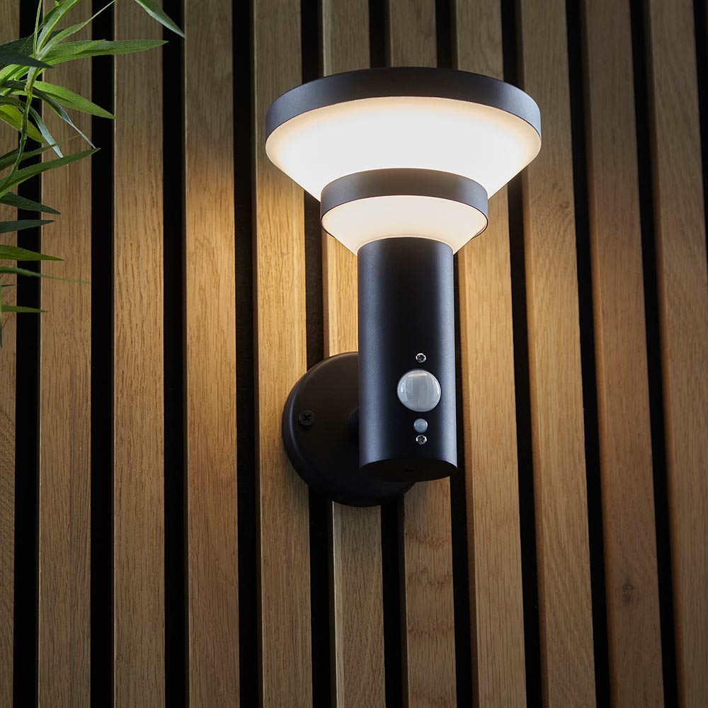 Save on energy bills without compromising on style. Modern design solar powered wall light with textured black and white pc diffuser. PIR sensor to help light the way – 110 degrees detection angle and 8m maximum range. Three intelligent modes to choose from MODE ONE (CONSTANT) Automatically illuminates at dusk with low light. MODE TWO (BOOST) Automatically illuminates at dusk with low light and gets brighter when motion is detected. MODE THREE (SECURITY) Only illuminates when motion is detected with bright light for 25 seconds. IP44 rated for safe outdoor use. Matching family items also available.