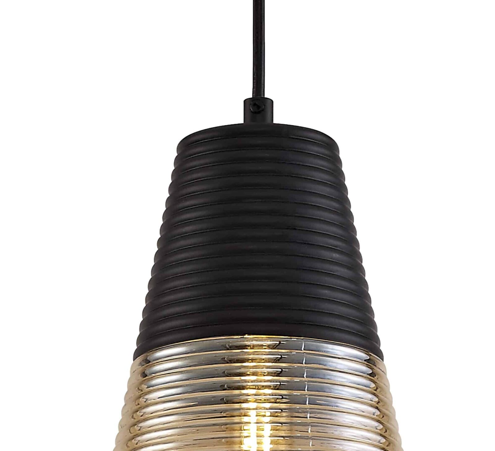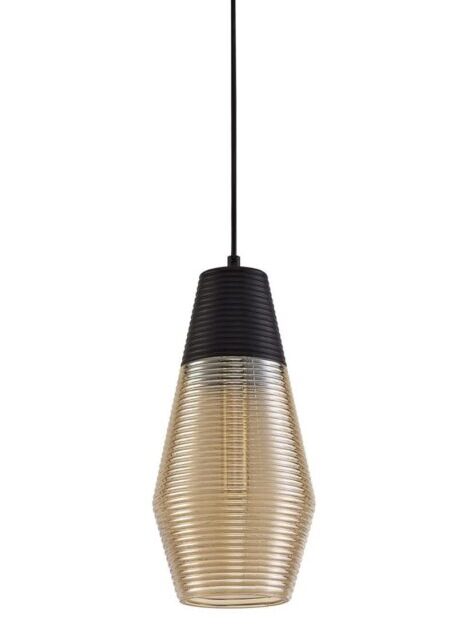 Crafted with meticulous attention to detail, each pendant features a unique shape that sets it apart from traditional designs. Unlike most pendants, the Hedrick collection seamlessly integrates the frame above the glass.  Consequently, creating a cohesive flow that captivates the eye. Additionally, each pendant in the collection boasts a rippled effect along its entire structure, from the cone to the tube and vase shapes. Consequently, this subtle yet striking detail adds depth and texture to the design, enhancing its visual appeal. The black color of the frame harmonizes perfectly with the amber-tinted glass finish, allowing the warm glow of the E27 lamp to shine through.