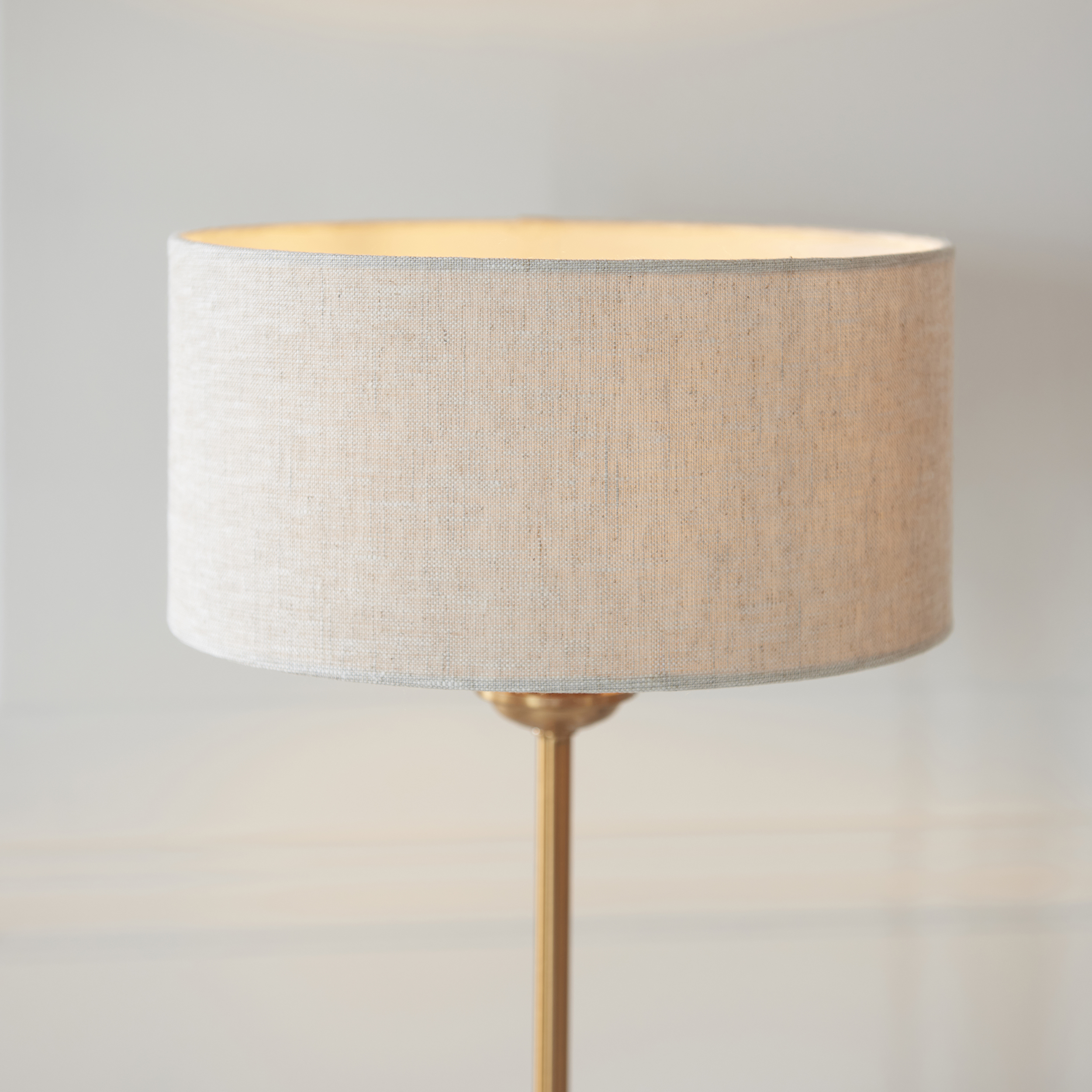 The Highclere single table light is a sophisticated mix of natural linen fabric shade, with matching colour cotton inner and vintage brass plated metalwork. This statement light is the perfect timeless addition to modern and classic homes. Classic modern single table lamp Aged brass plated finish Natural 100% linen fabric shade with matching coloured cotton inner Inline on/off switch with 1.5 metre black cable Compatible with E14 LED lamps