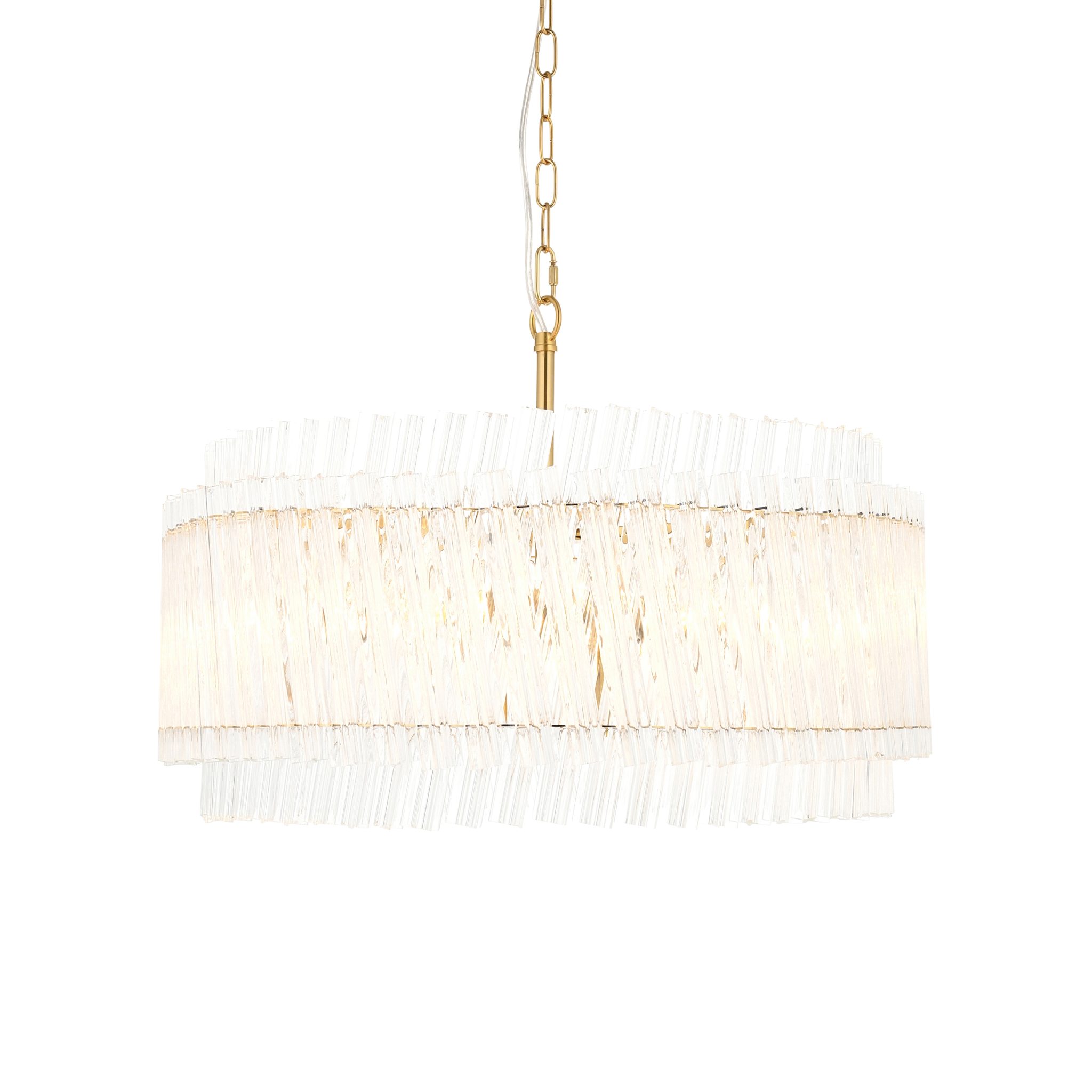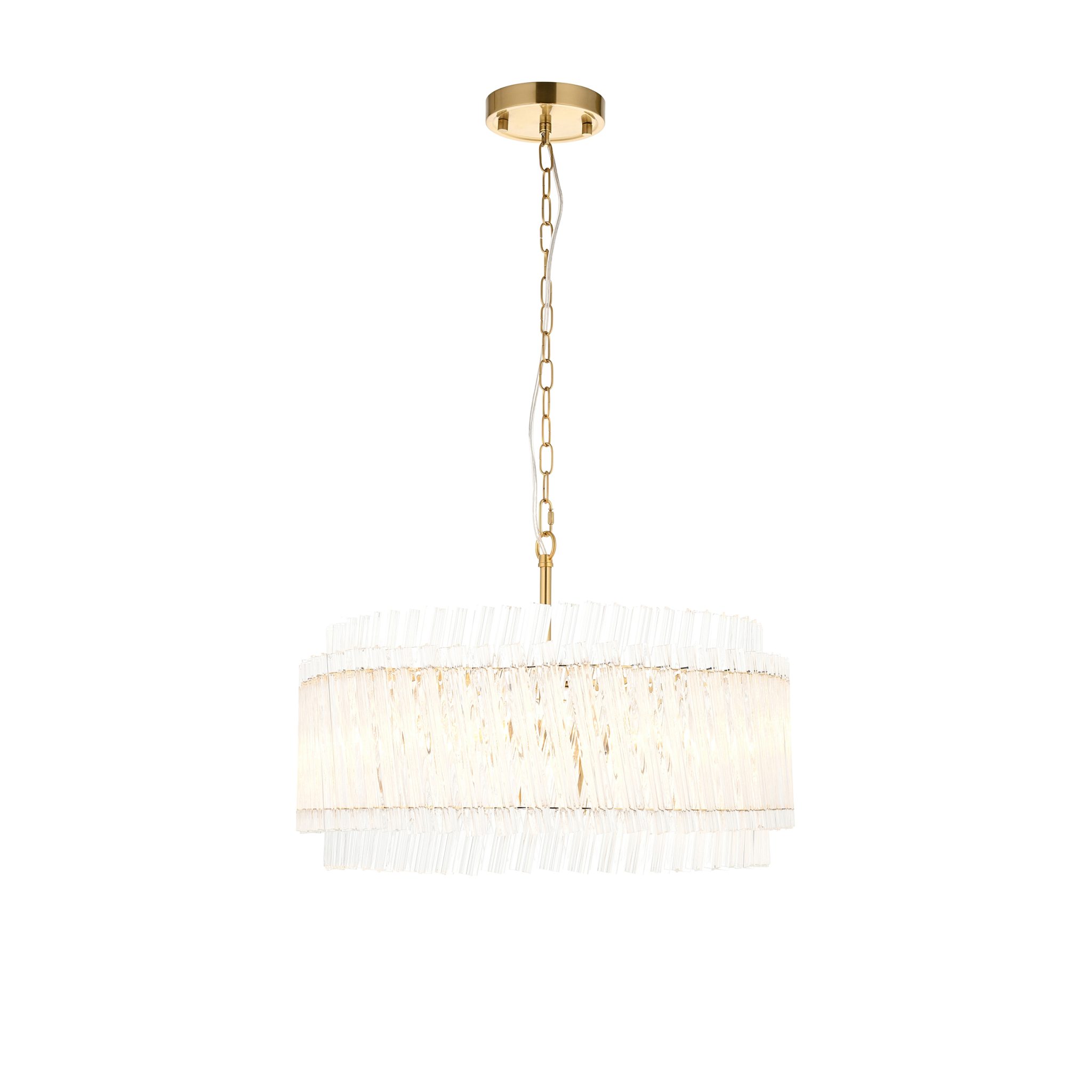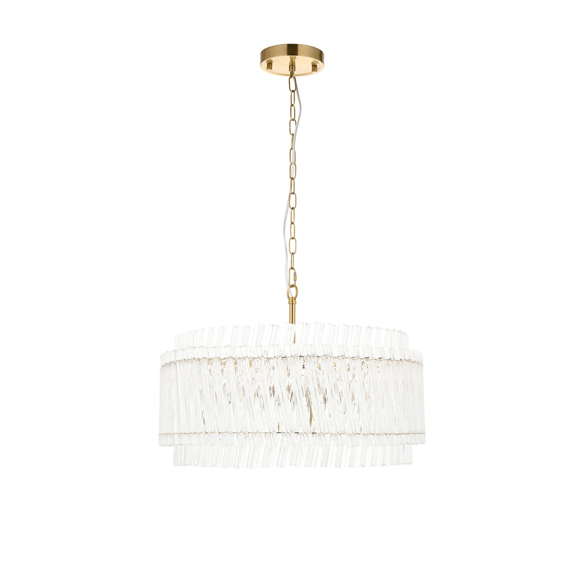 Bring a proper “wow” moment to your ceiling with the Inez Pendant. This design layers clear glass rods in two shimmering tiers, catching and scattering light like a little indoor chandelier waterfall, without feeling fussy. The brushed aged brass plated metalwork adds warmth and depth, so it suits everything from modern homes to more classic spaces.