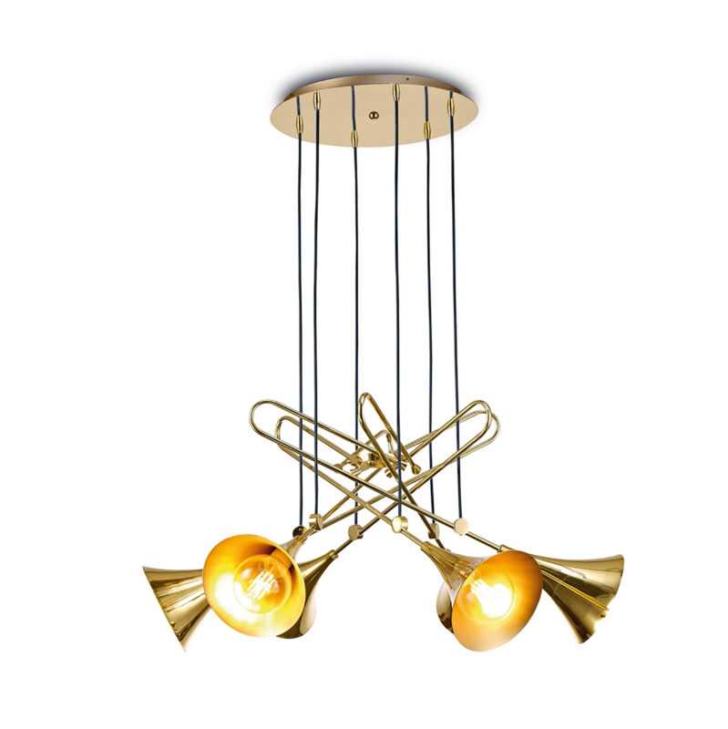 Immerse yourself in the feel of a bygone era with the Jazz pendant. Moreover, this remarkable trombone piece effortlessly transports you back to the captivating music scene of the 1950s. Additionally, the Jazz Oro collection goes beyond conventional lighting options. In fact, it offers a diverse range of fixtures designed to elevate your space and create a unique atmosphere.