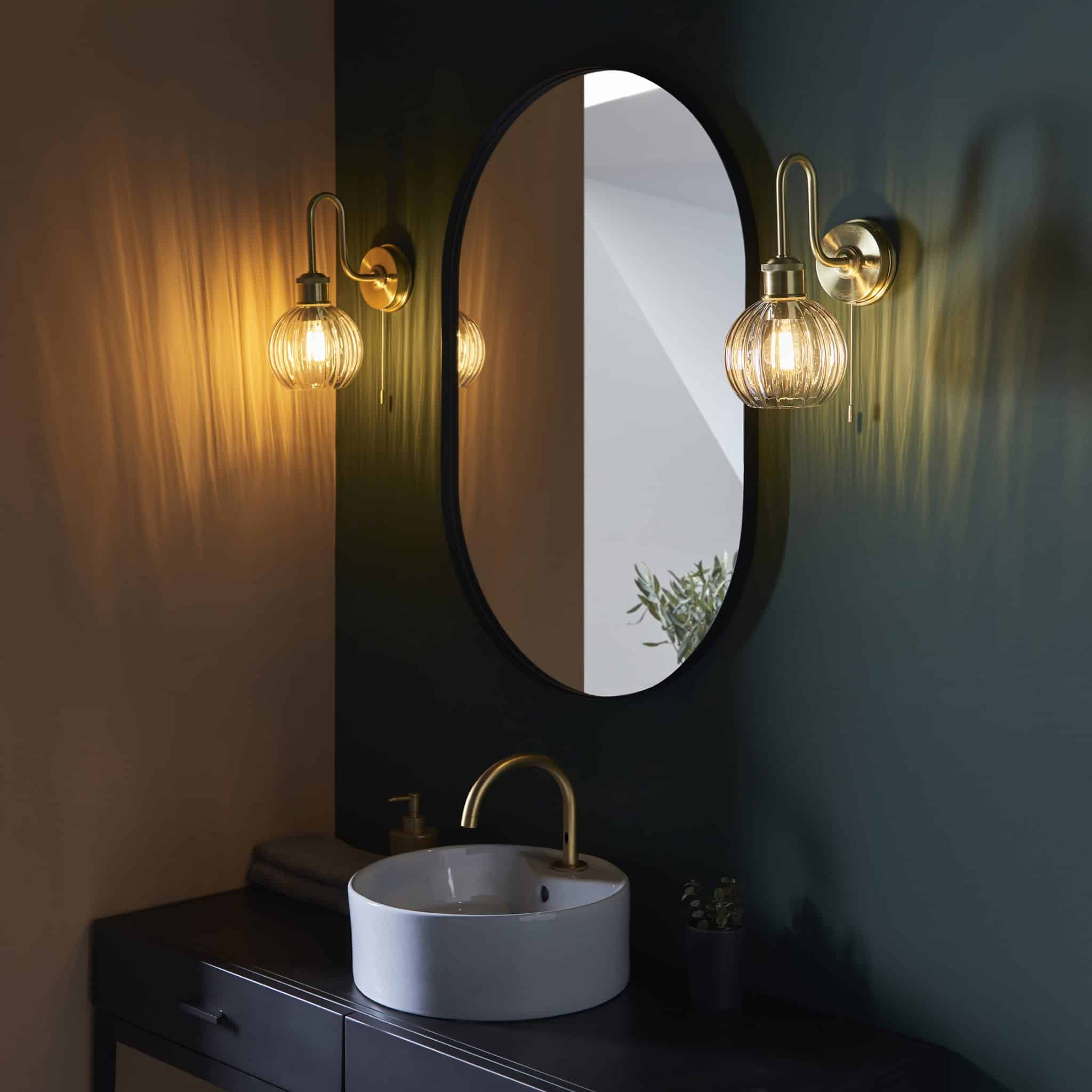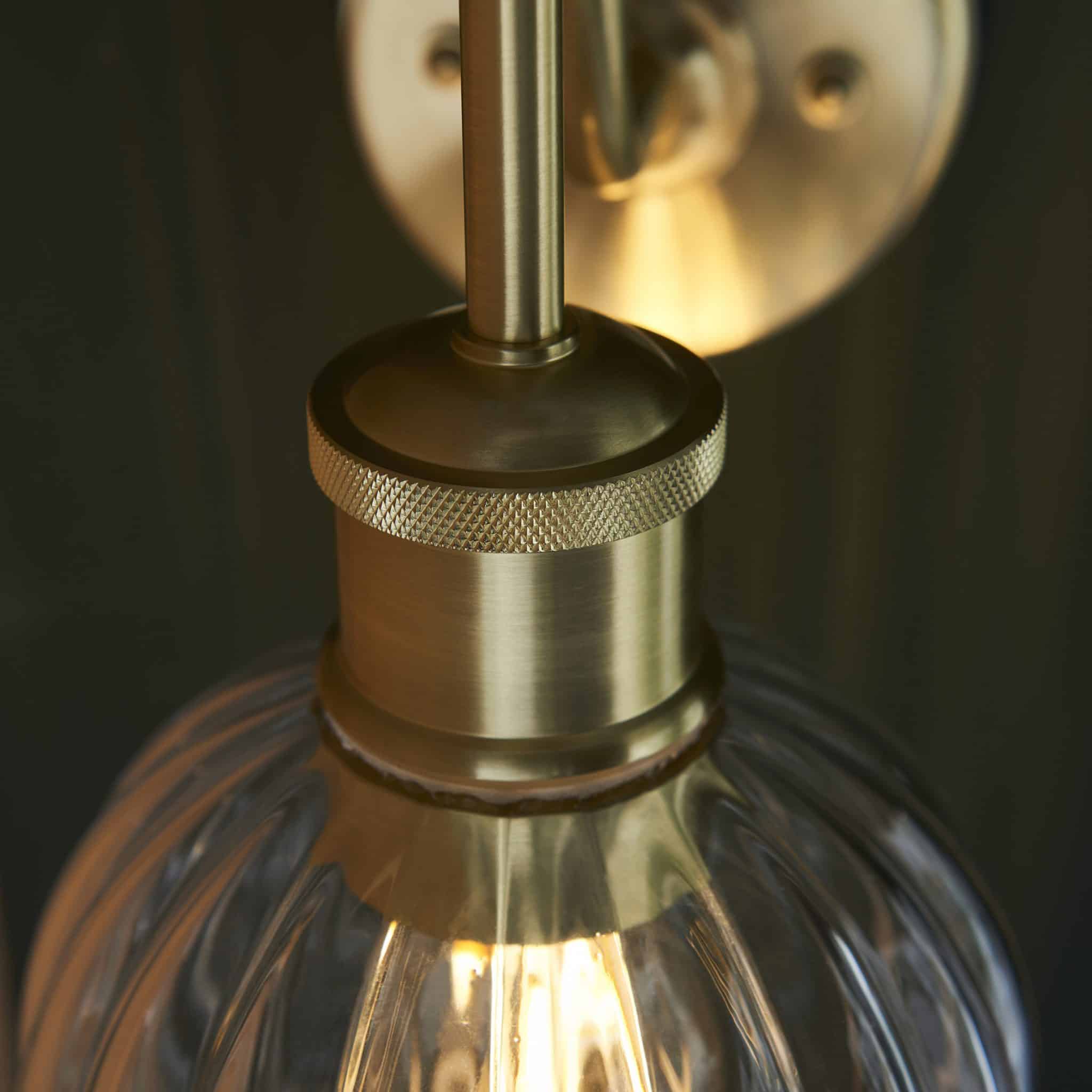 Bring some art deco inspired elegance to your bathroom with this beautiful Kendall Bathroom Wall Light. Moreover, the IP44 rated swan-neck light will light up any bathroom beautifully. Furthermore,  with its ribbed glass shade, satin brass finish and delicate knurled detailing, this wall light makes a real style statement.