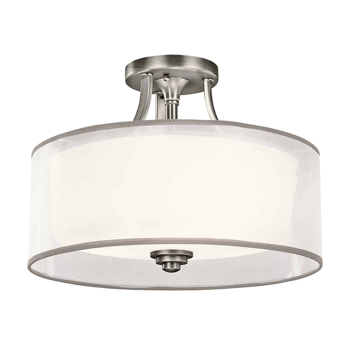 The Lacey collection offers a beautiful contrast, melding the charm of Olde World style with clean modern-day materials. The Antique Pewter Finish enhances the bold, unadorned rounded-arm styling. They feature avant-garde double shades made of organza fabric with Opal inner glass.