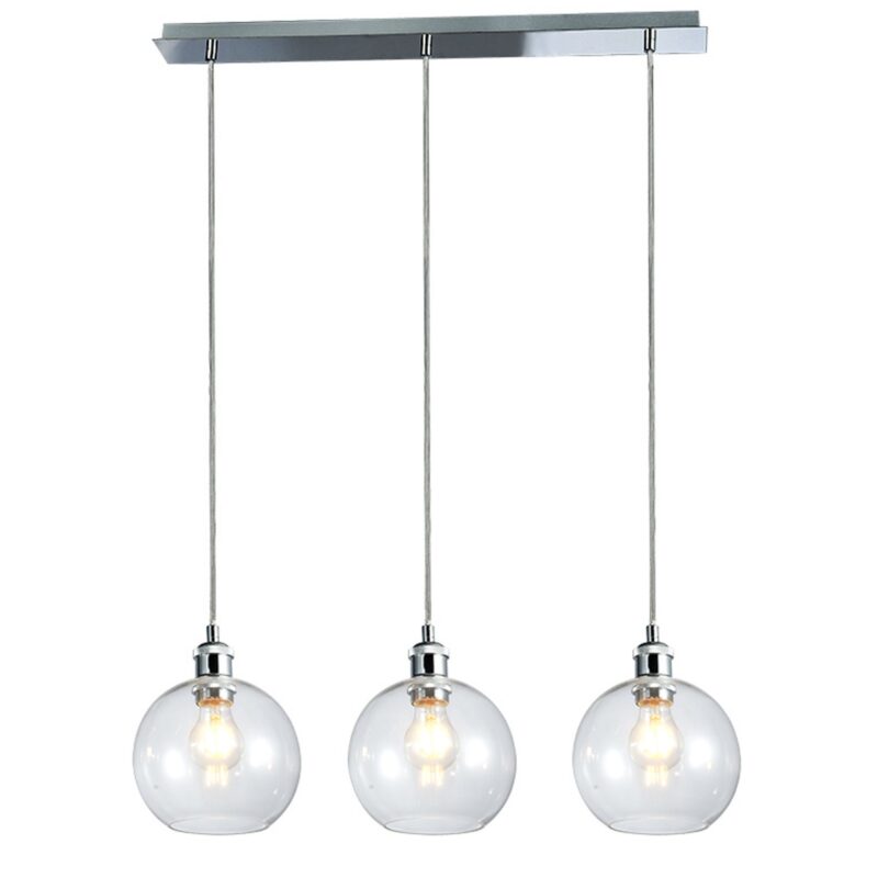 Lewis 3 Light Bar Small Glass Ball Pendant Polished Chrome