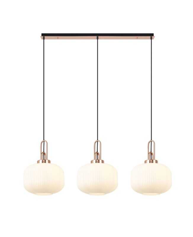 Luxora Linear, 3 x E27, Copper/Matt Black With 30cm Pumpkin Shaped Ribbed Opal Glass.