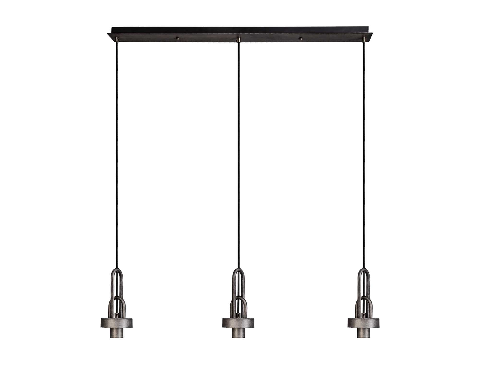 Luxora Linear, 3 x E27, Aged Pewter/Matt Black With 30cm Pumpkin Shaped Ribbed Opal Glass.